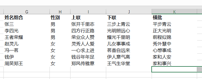 # 检查K列(横批)是否有数据(2-4个汉字)