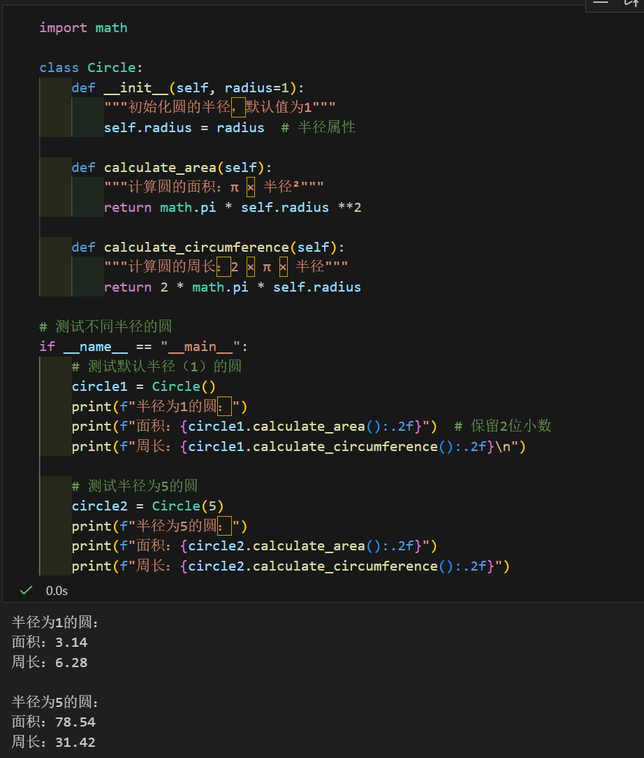 print(f"圆的面积:{circle.calculate_area():.2f},周长:{circle.calculate_circumference():.2f}")