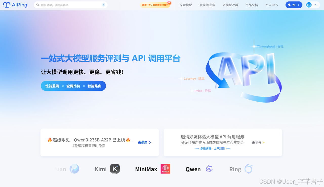 AI Ping 是集大模型服务平台评测与一站式调用功能于一体的专业服务平台,被开发者形象地称为"大模型 API 服务的大众点评"。