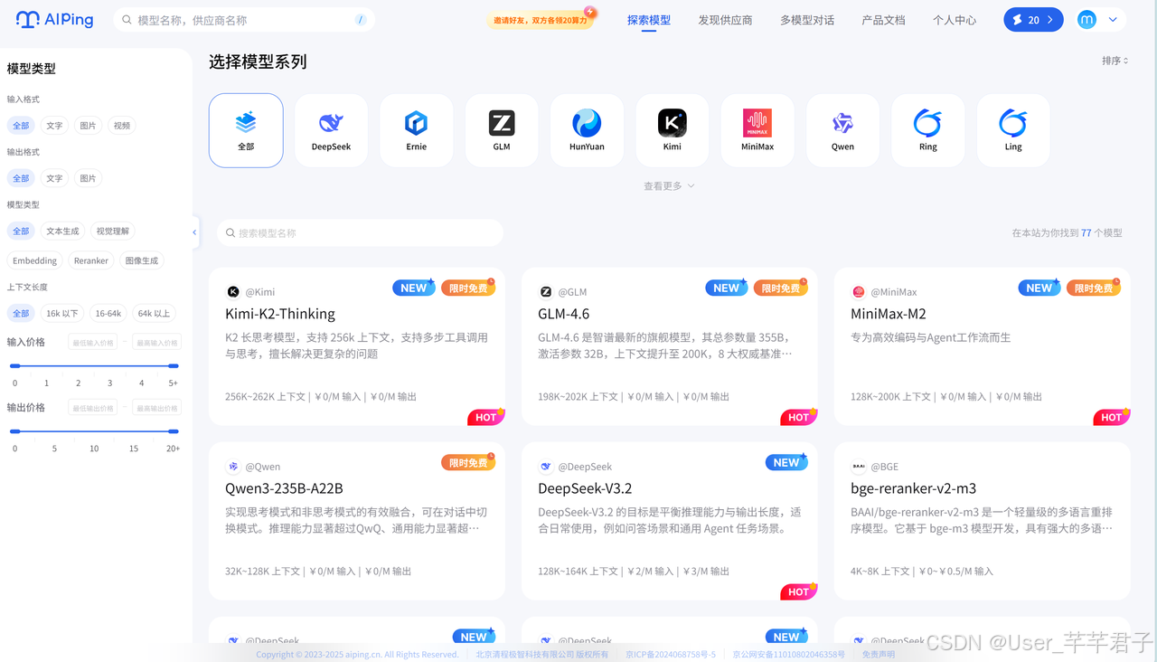 "基础设施"。- 随着大模型技术的持续迭代,选型的复杂度将进一步提升,而 AI Ping 这类中立、客观的决策支持平台,必将成为连接模型厂商与终端用户的核心桥梁,推动 AI 应用从 "盲目选型" 走向