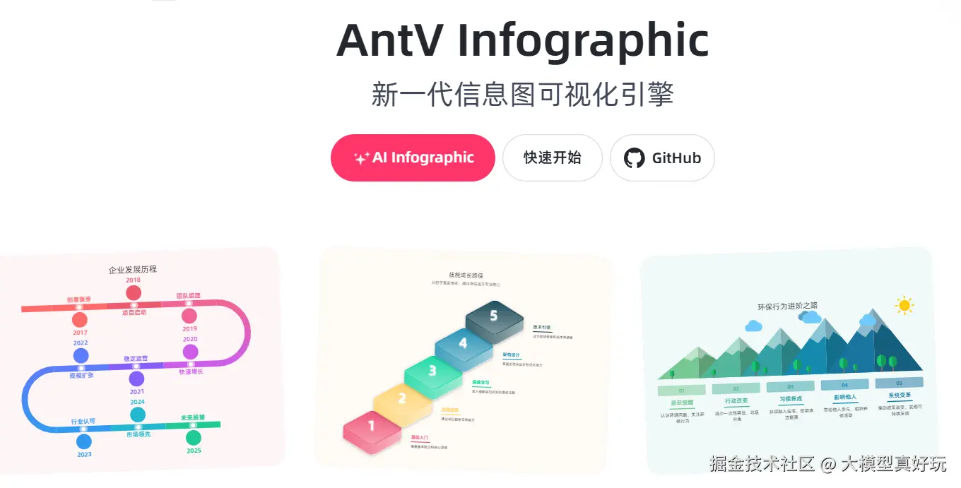 正为此发愁时笔者偶然发现了 AntV 新推出的信息图可视化引擎------AntV Infographic。它同样出自 AntV 团队,能够通过简洁的配置生成设计感十足、重点突出的信息图表,正好切中了笔者在图表展示上的痛点。