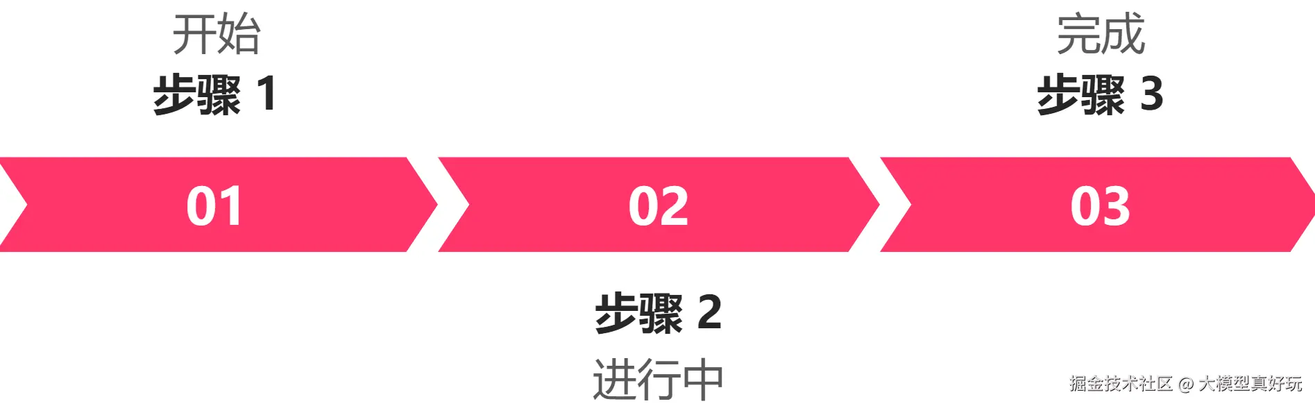 例如,以下代码使用官方 list-row-simple-horizontal-arrow 模板,在纯HTML环境中快速生成了一个步骤流程图: