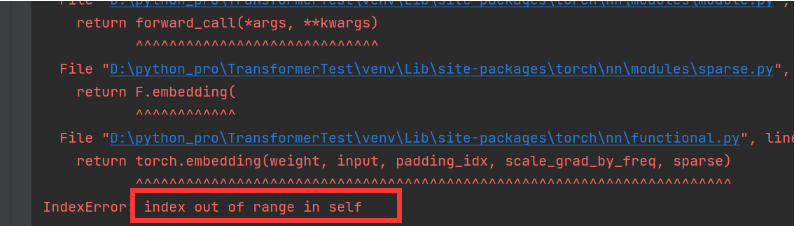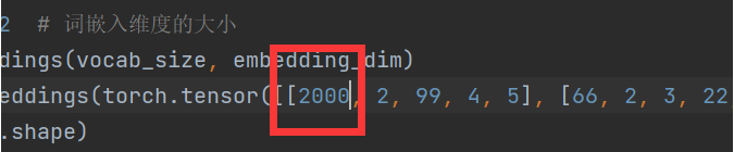 注意点:传入的词向量数值大小不能大于等于定义的vocab_size词表大小。否则越界报错