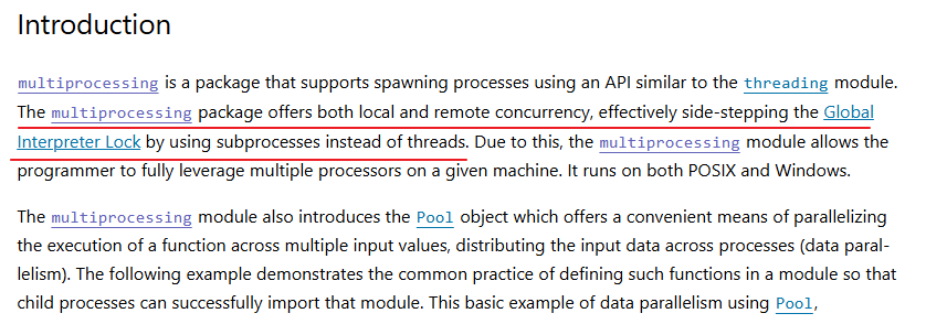 multiprocessing 可以绕过 GIL 锁,这是它与 threading 最根本的区别之一,multiprocessing 会创建独立的进程,每个子进程都有:Python 解释器实例,独立的内存空间,独立的 GIL ,因此多个 Python 进程可以真正并行运行在多个 CPU 核心上,彼此不受 GIL 限制