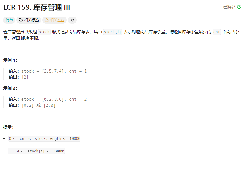 对整个数组进行升序,然后返回前 cnt 项的集合就行。