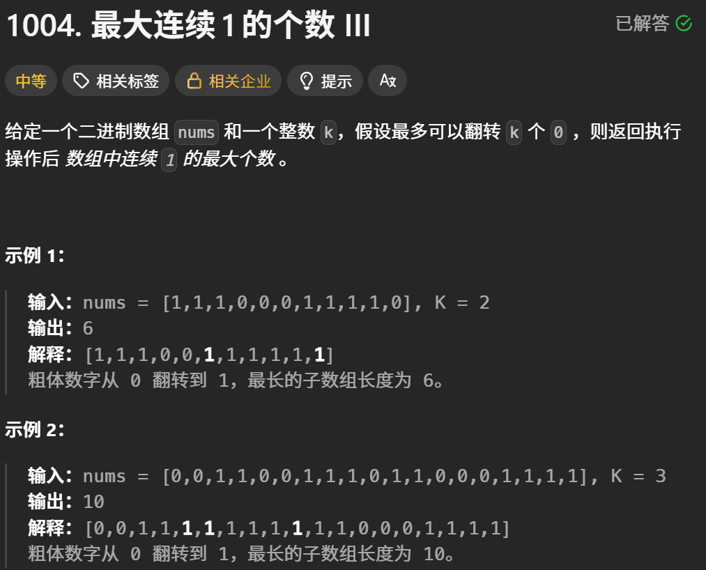 [3.最大连续1的个数 III](#3.最大连续1的个数 III)