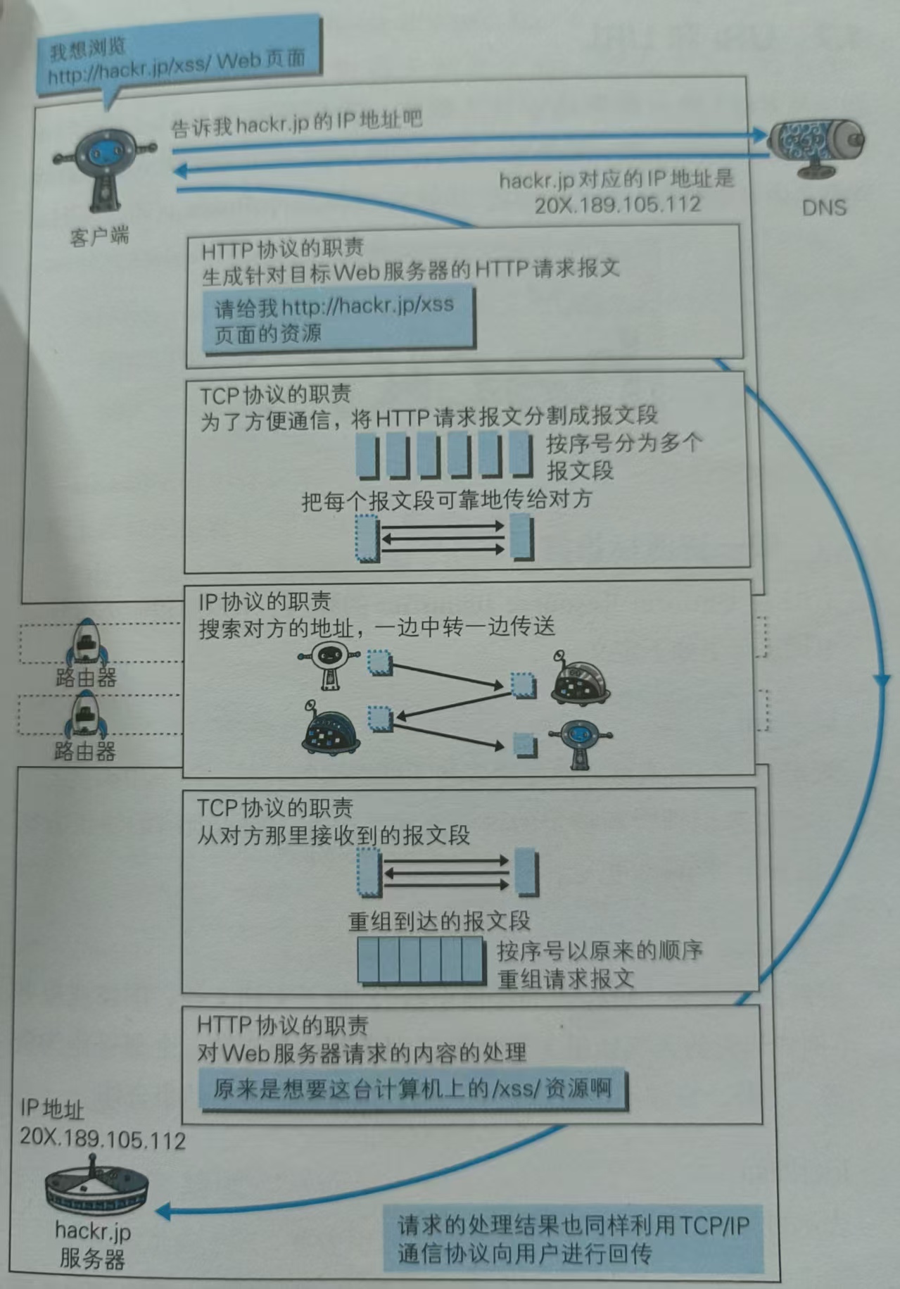 首先,作为发送端的客户端在应用层发出一个想看某一网页的HTTP请求。