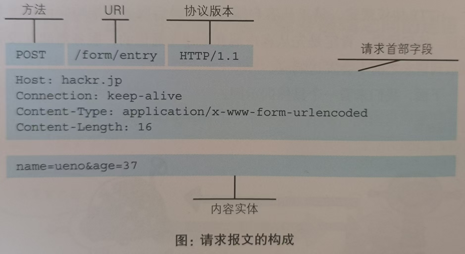 在请求中,HTTP报文由方法、 URI、 HTTP版本、 HTTP首部字段等部分构成。