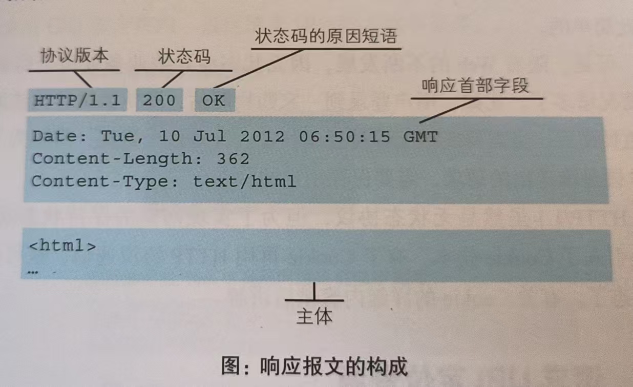 在响应中, HTTP报文由HTTP版本、状态码(数字和原因短语)、 HTTP首部字段三部分构成。