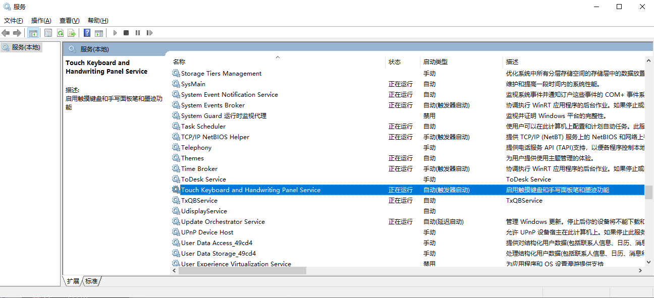 找到 Touch Keyboard and Handwriting Panel Service 启用