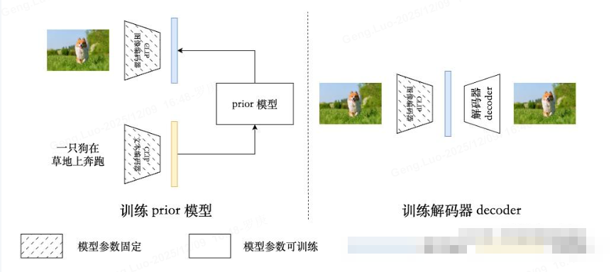 - 解码器:将图像嵌入解码为高分辨率图像(扩散模型)。