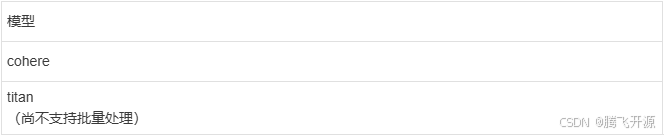 Converse API 不支持嵌入操作,因此这些操作将保留在当前 API 中,并且现有 InvokeModel API 中的嵌入模型功能将保持不变。