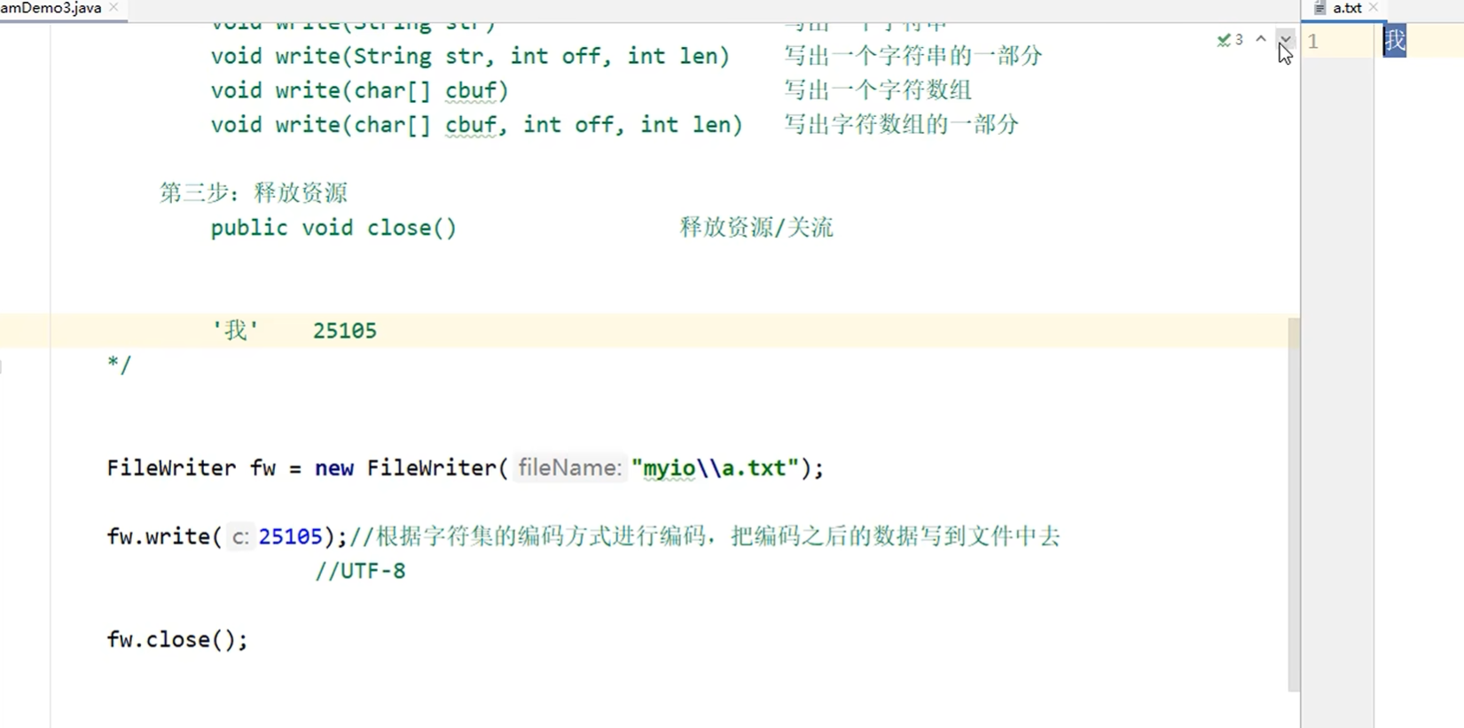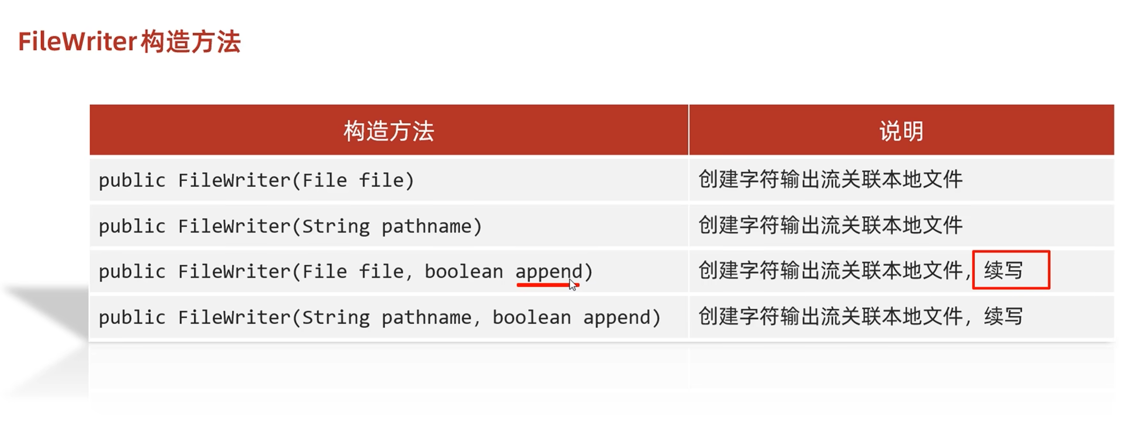 这里只创建了一个字符输出流没关闭之前可以重复使用write,如果重新再创建字符输出流就会清空了