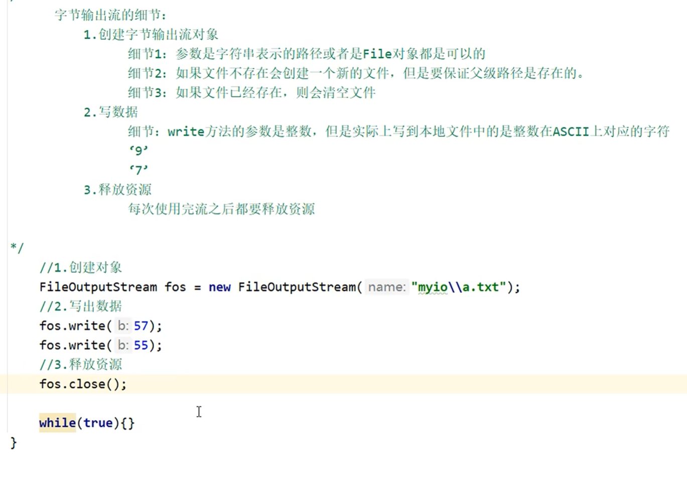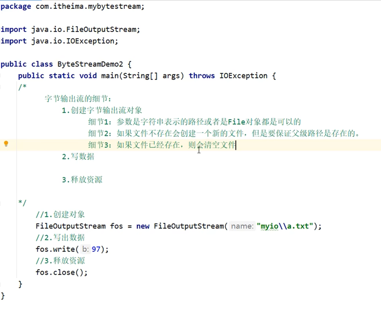 字节输出流写出数据的细节