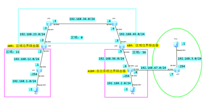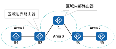 √ 该类设备的所有接口都属于同一个OSPF区域。如R1、R4、R5。 - 区域边界路由器(Area Border Router):