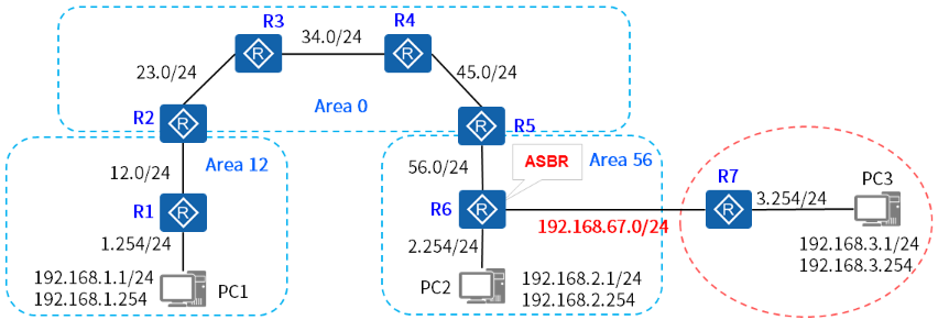 [R6-GigabitEthernet0/0/0]ip add 192.168.67.6 24