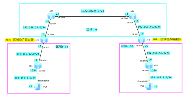 √ Network Summary LSA(3类LSA)由ABR产生,用于向一个区域通告到达另一个区域的路由。 - OSPF多区域配置
