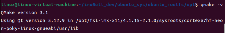 linux@linux-virtual-machine:~/imx6ull_dev/ubuntu_sys/ubuntu_rootfs/systemui$ qmake -v