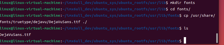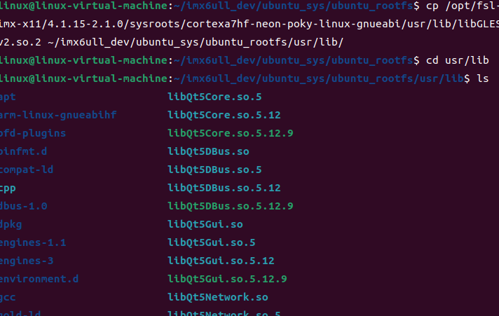 inux@linux-virtual-machine:~/imx6ull_dev/ubuntu_sys/ubuntu_rootfs$ cp /opt/fsl-imx-x11/4.1.15-2.1.0/sysroots/cortexa7hf-neon-poky-linux-gnueabi/usr/lib/libGLESv2.so.2 ~/imx6ull_dev/ubuntu_sys/ubuntu_rootfs/usr/lib/