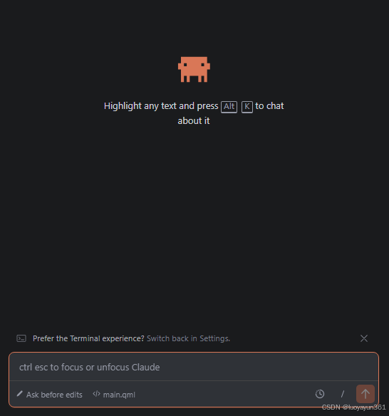 在前面配置号环境变量后,安装这个插件就可以直接在IDE里面使用claude了。
