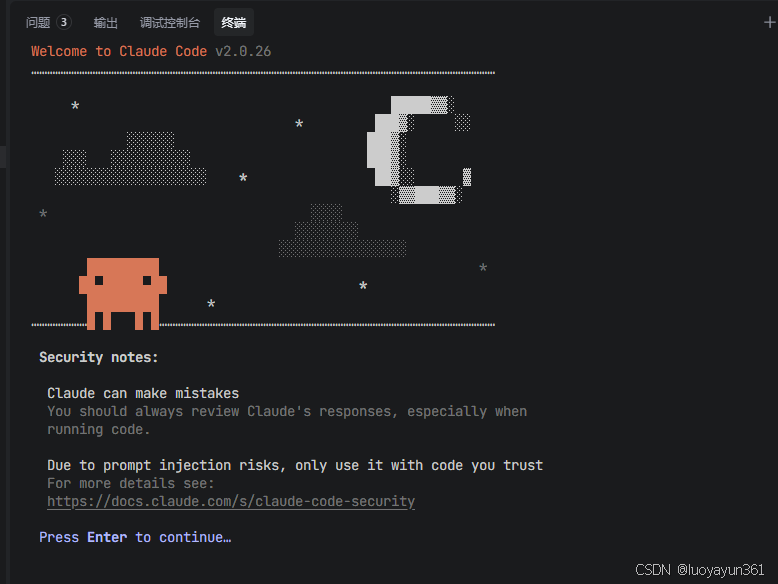 设置成功后就可以在终端使用Claude了,在终端输入 claude