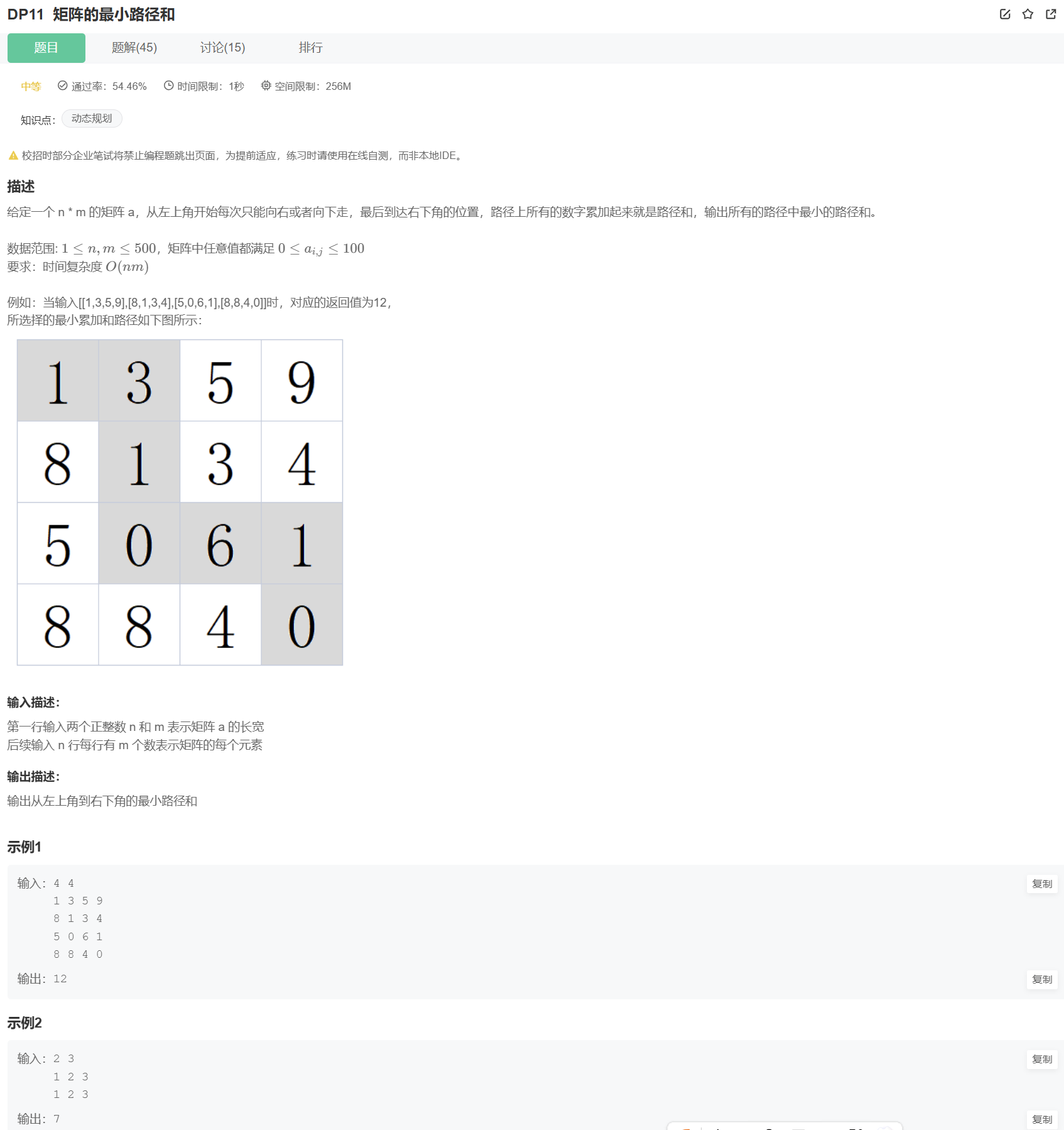 [例题 2:矩阵的最小路径和(牛客 DP11)------ 路径类 DP 的 "导航基础题"](#例题 2:矩阵的最小路径和(牛客 DP11)—— 路径类 DP 的 “导航基础题”)