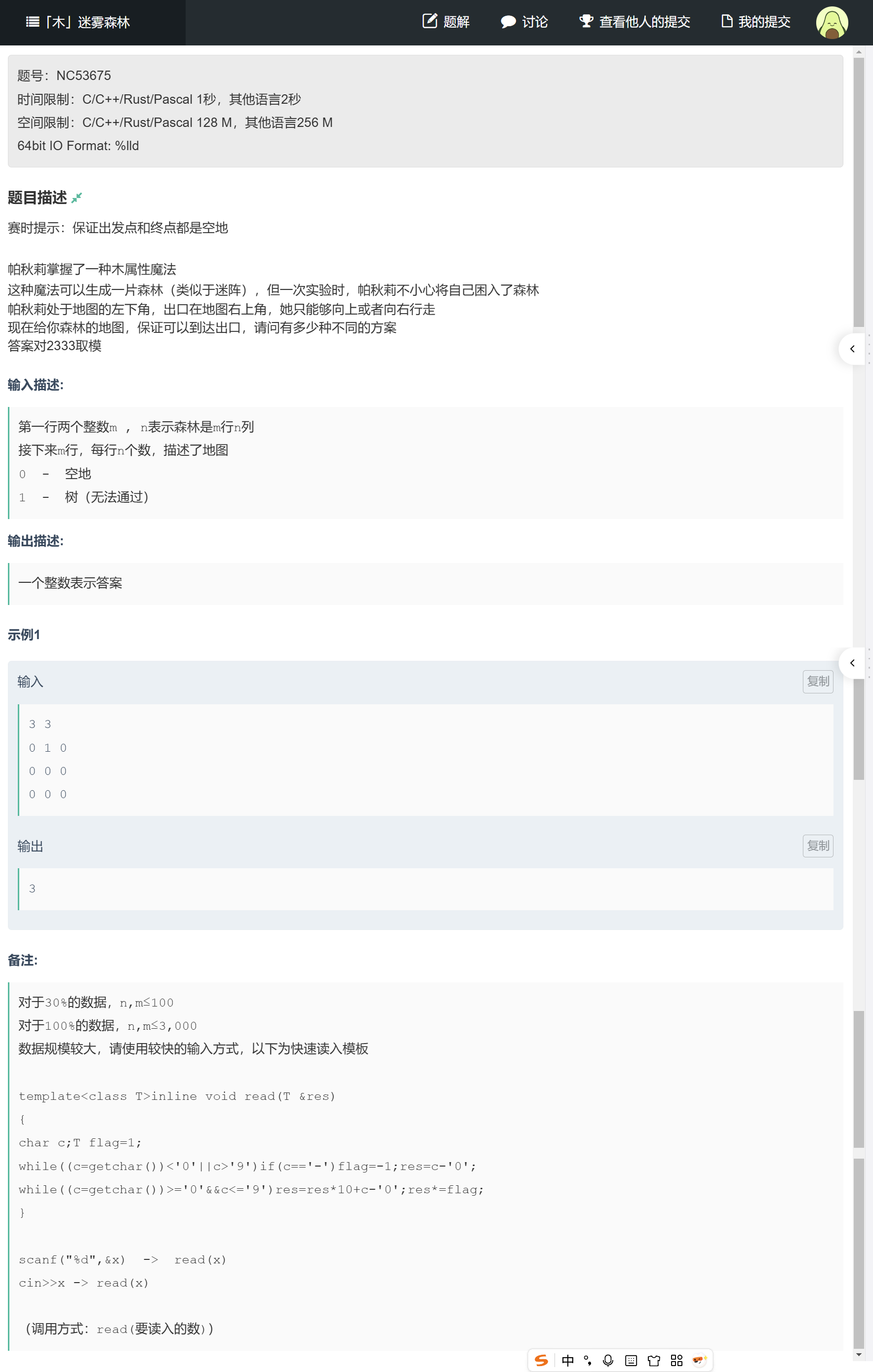[例题 3:"木" 迷雾森林(牛客网)------ 路径类 DP 的 "障碍迷宫题"](#例题 3:“木” 迷雾森林(牛客网)—— 路径类 DP 的 “障碍迷宫题”)