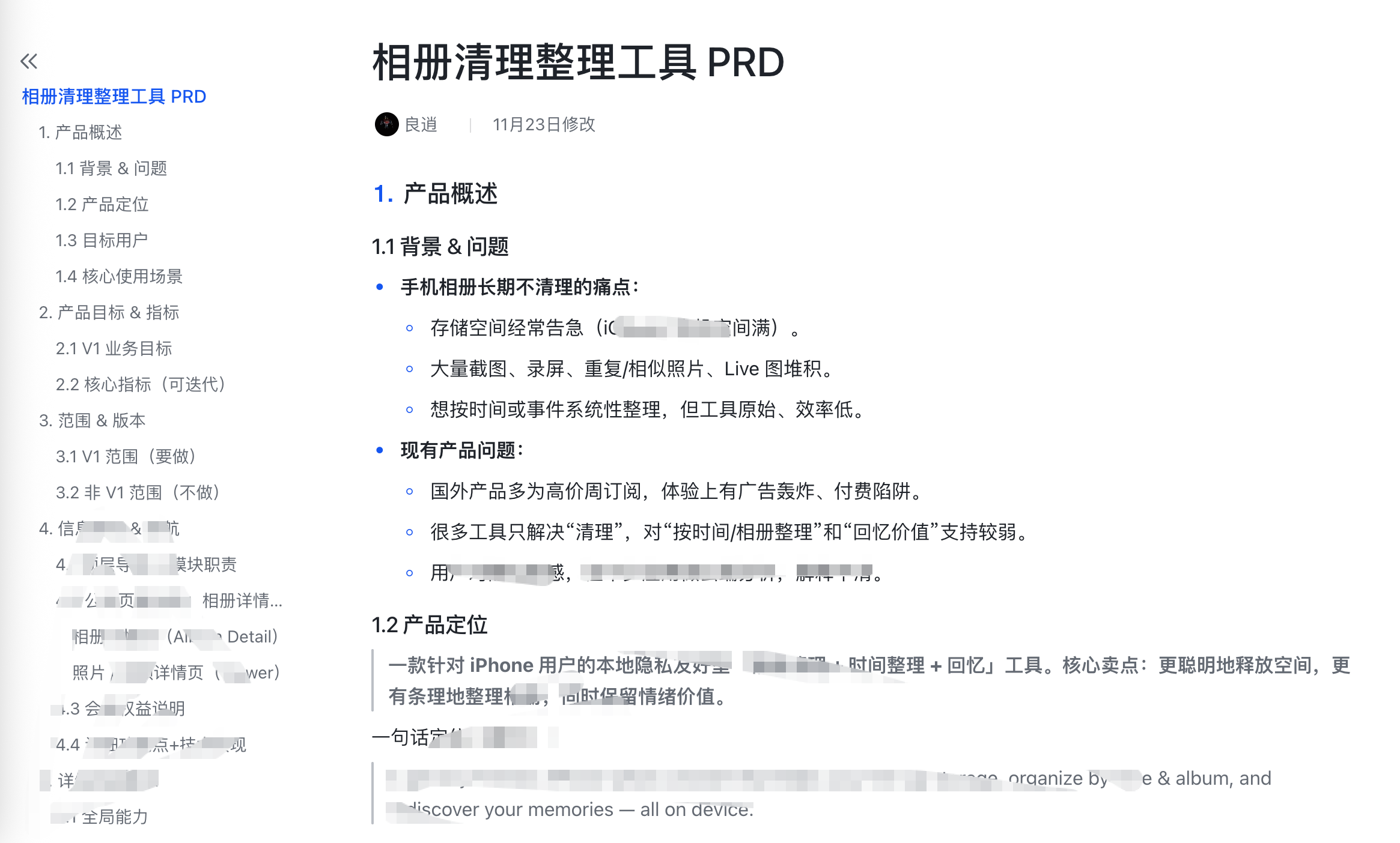 这一步特别关键,也最接近我们之前 PRD 的结构,但这里我会刻意模糊一些内部命名和实现细节,只保留对外可以公开的那一层。