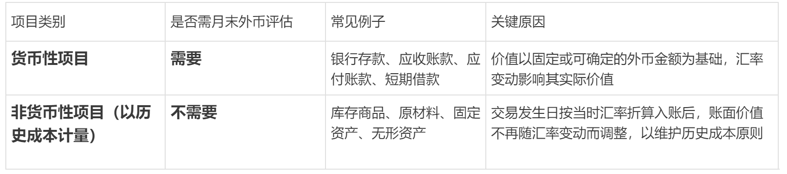 在月末财务结算时,需要进行外币评估的科目主要是那些以外币计价的货币性资产和负债科目,其核心目的是确保在编制财务报表时,这些资产和负债的本位币价值能够反映期末最新的汇率水平 。