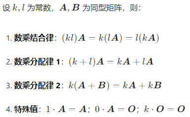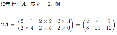 即 用数 k 乘以矩阵的每一个元素,结果仍为 m×n 矩阵。