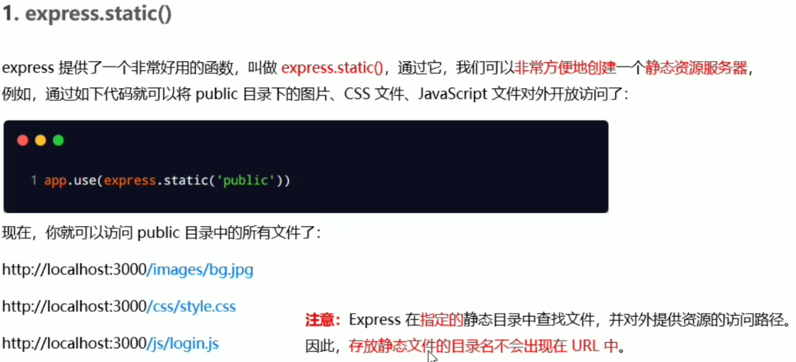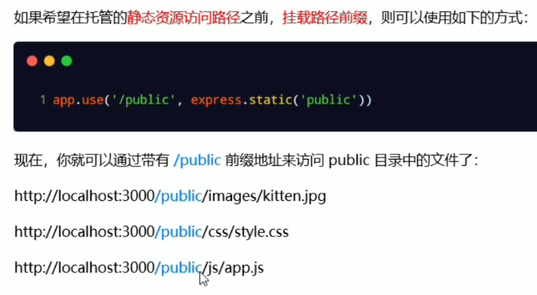 如果要托管多个静态资源目录,就多次调用express.static()函数即可;