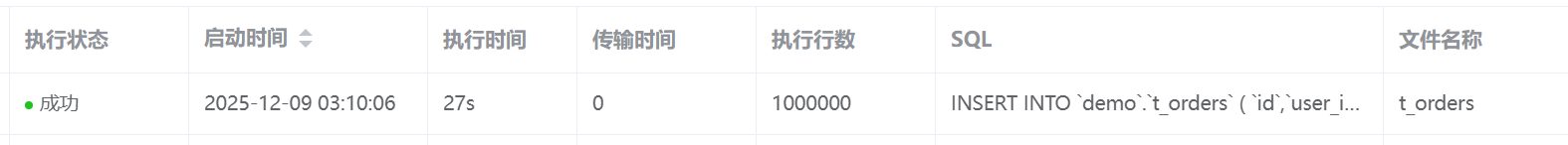 我们的目标是:往这张表里快速灌入 100 万条数据,且数据分布要尽量符合真实业务场景(有离散度),以验证 idx_user_time 索引的有效性。