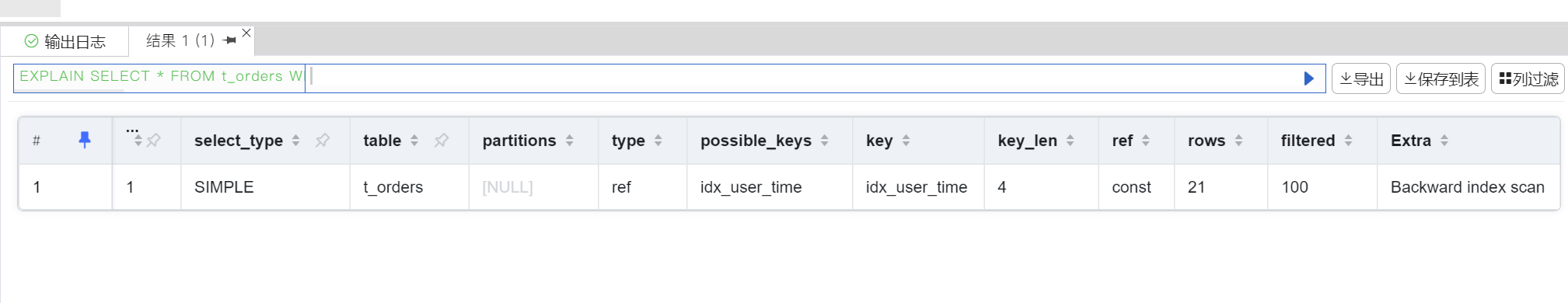 type: ref:全表扫描(ALL)消失了,key字段显示为idx_user_time,说明索引被命中。 -