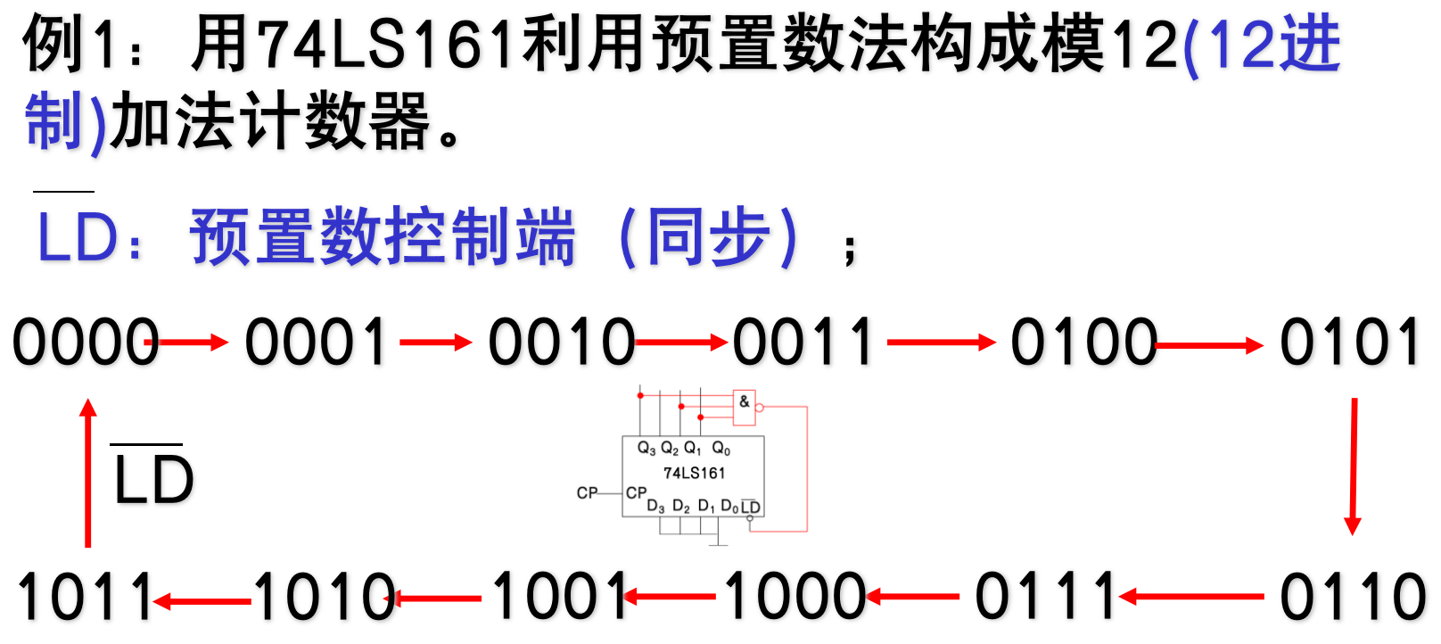 | LD ‾ \overline{\text{LD}} LD | 预置数控制端 (Load) | 同步 | 功能: 当 CR ‾ = 1 \overline{\text{CR}}=1 CR=1 且 LD ‾ = 0 \overline{\text{LD}}=0 LD=0 时,在下一个 CP 上升沿 到来时,将数据 D 3 D 2 D 1 D 0 D_3 D_2 D_1 D_0 D3D2D1D0 载入到计数器中。 |