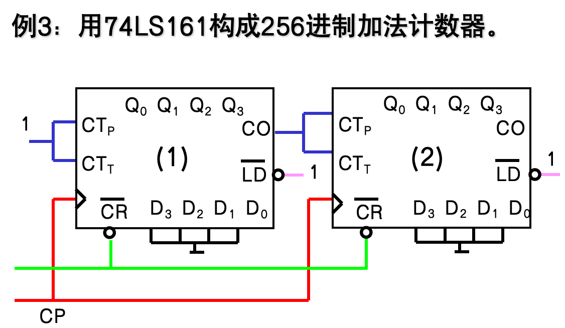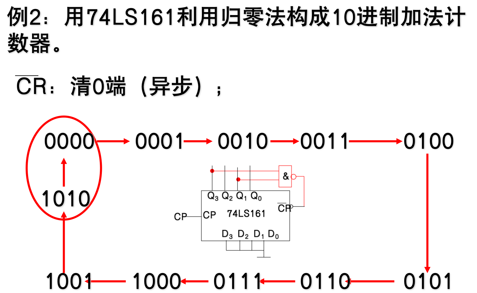 - 74LS161 的CR端是异步低电平有效------只要CR=0,不需要等待CP上升沿,直接将Q1-4全部置0