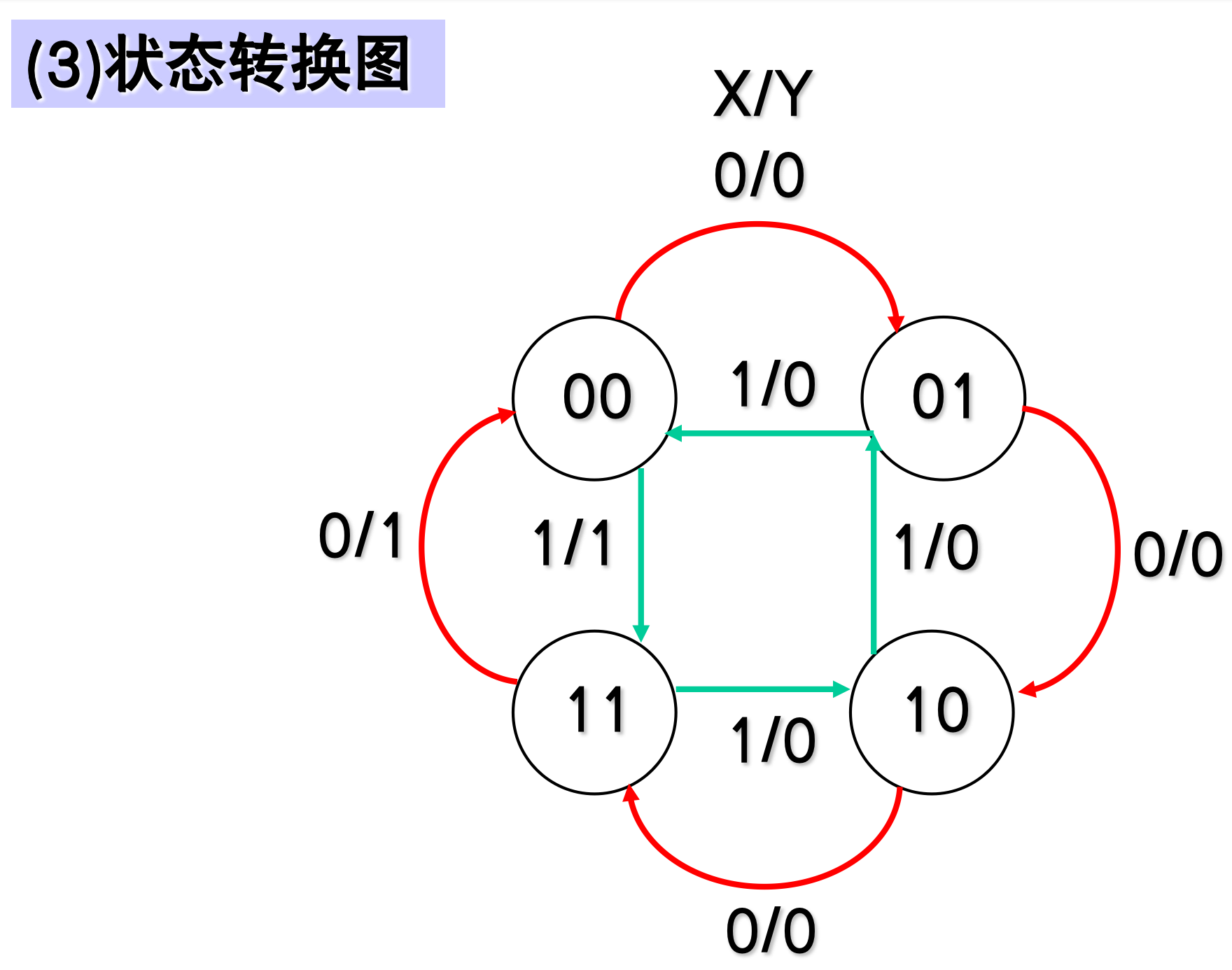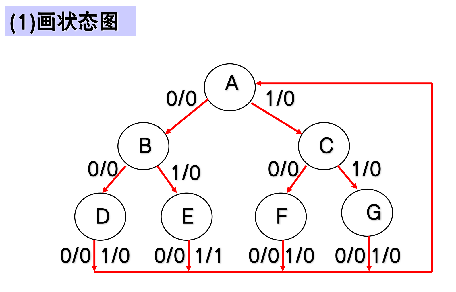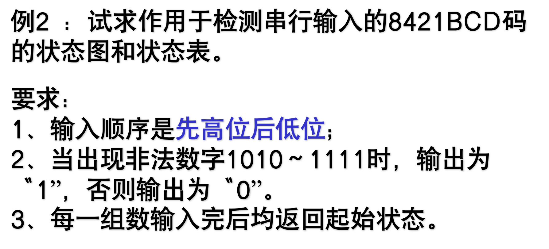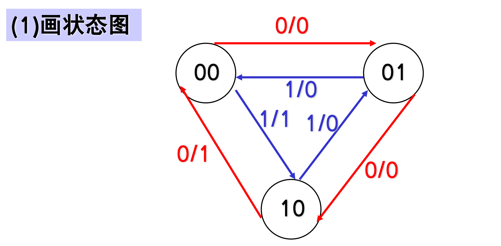 - 摩尔电路的输出电路简略,但是状态图个数多1!必须用一个单独状态来表示检测到序列,同时赋予输出值!