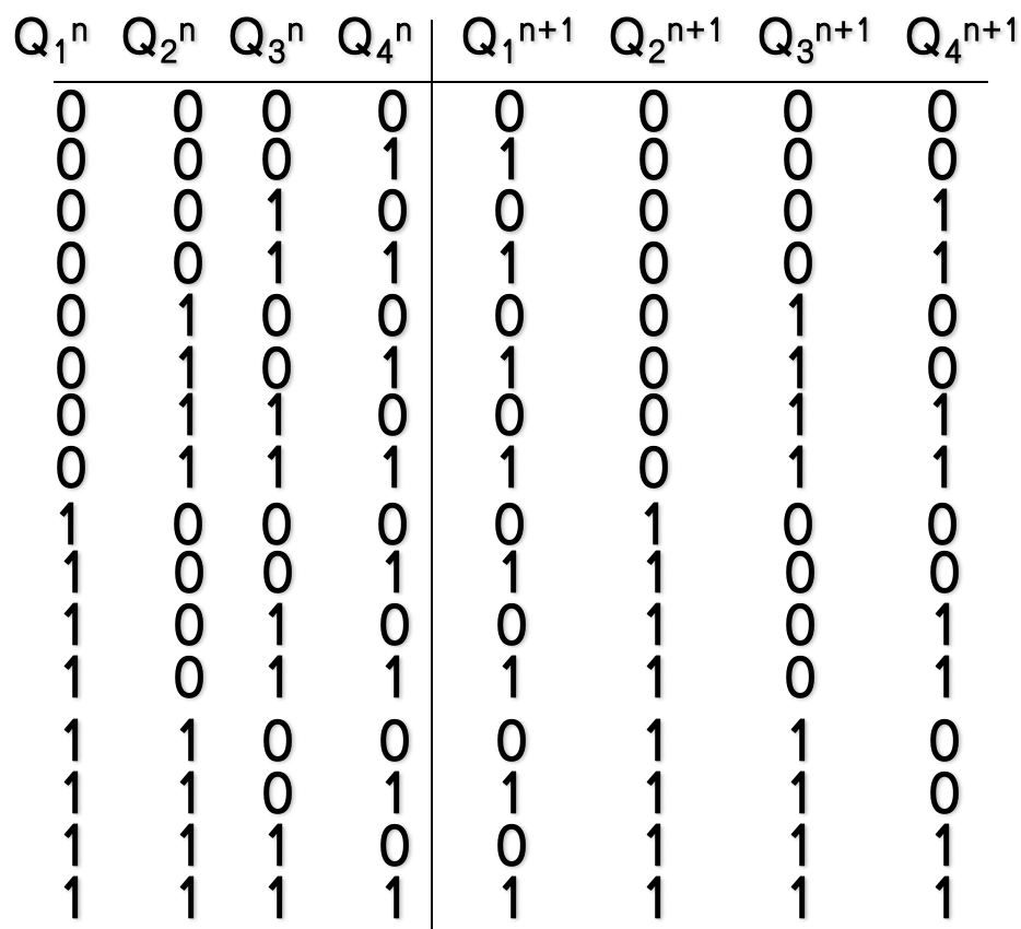 | 1 | 1 | 1 | 1 | ↑ \uparrow ↑ | Q n + 1 Q^n + 1 Qn+1 | 加法计数 |