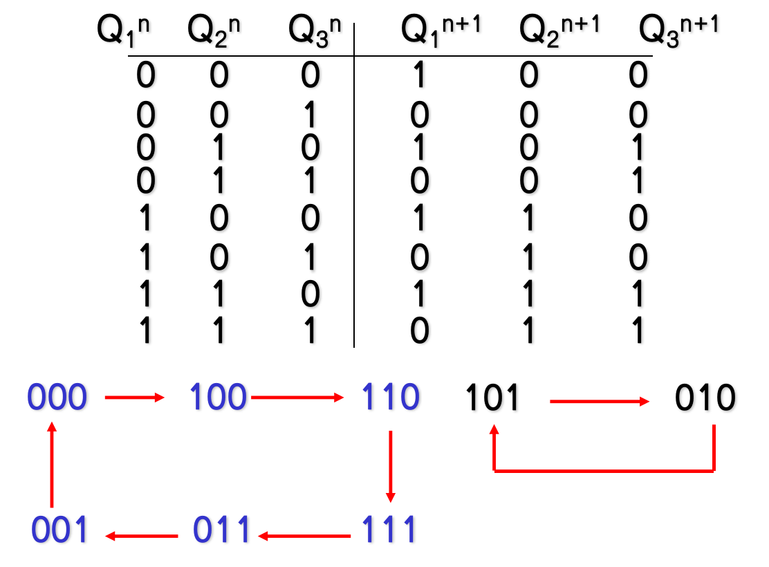 - 非工作状态: 这些状态不属于 电路设计者为了实现特定功能而规定的有效工作状态链(即正常的状态循环)。