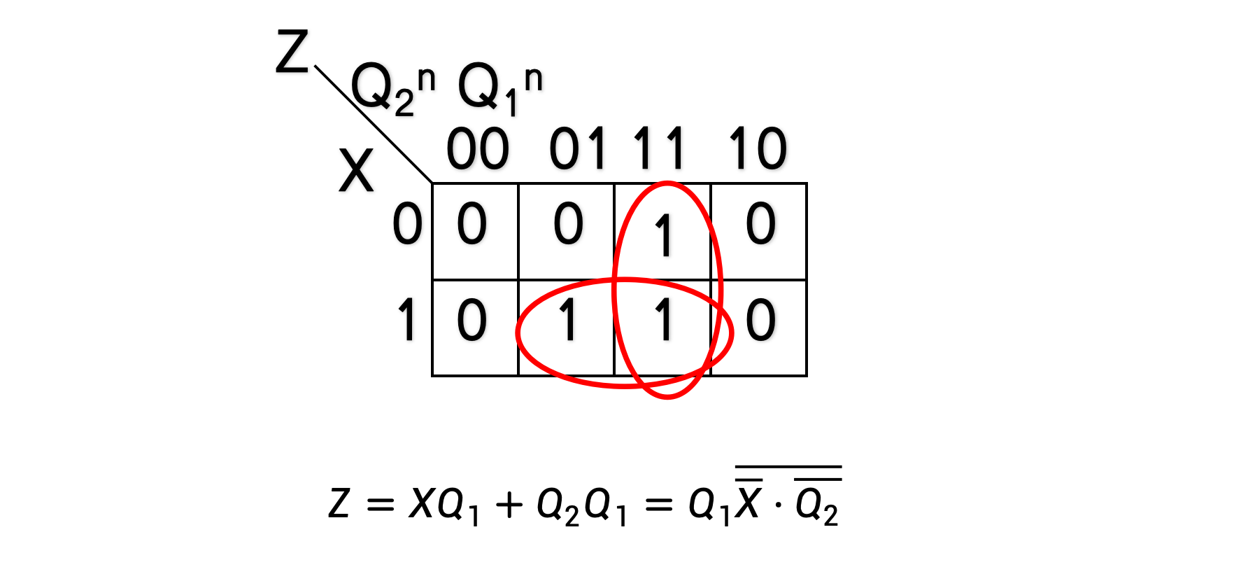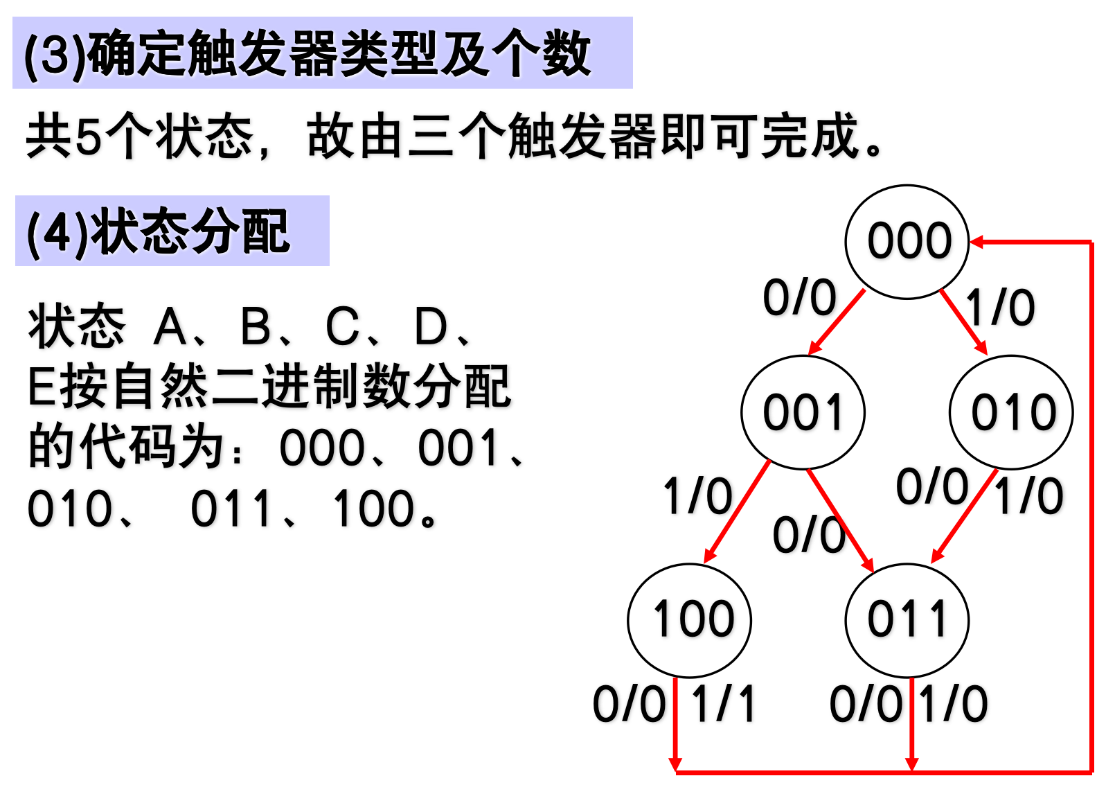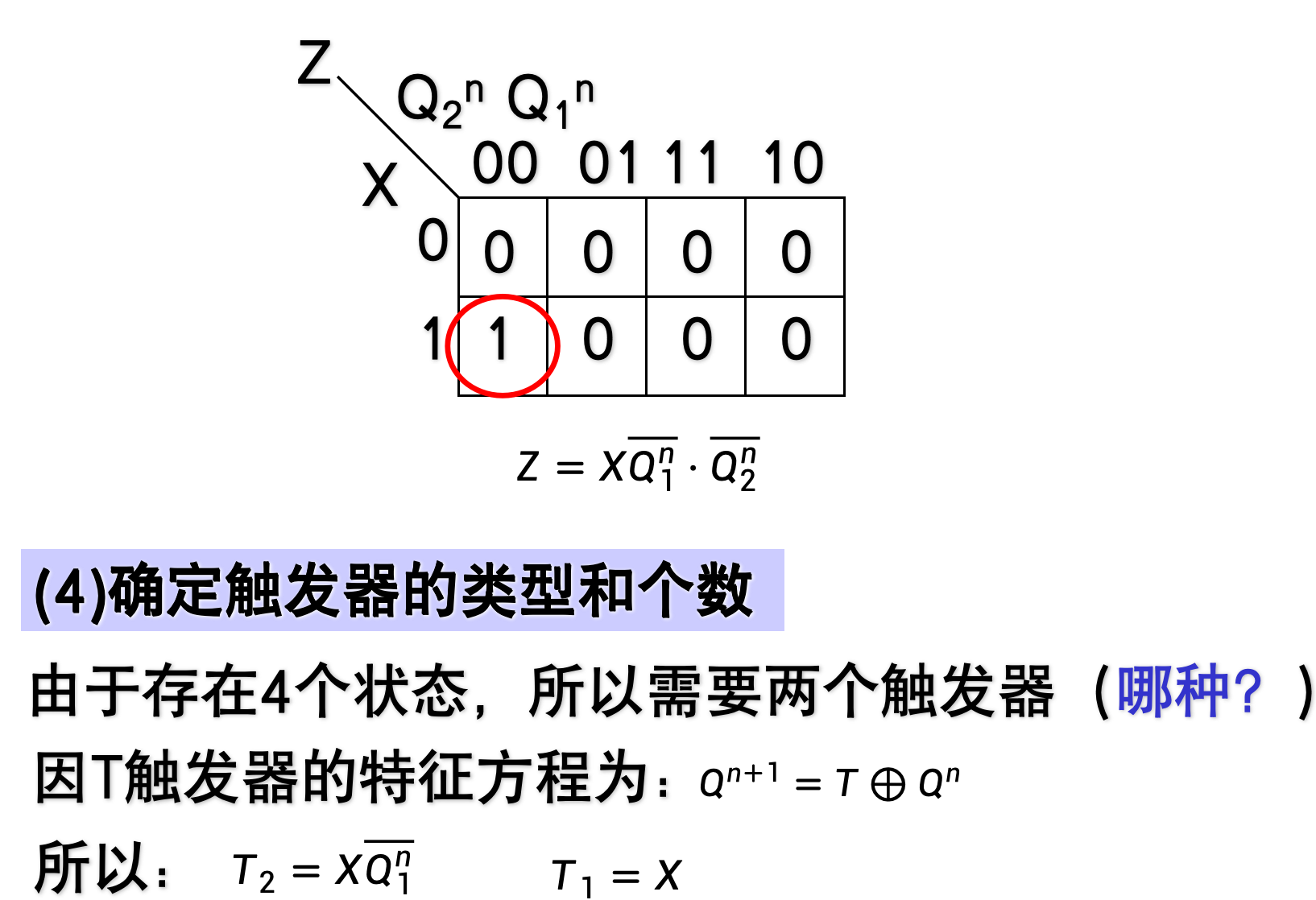 - 这样可以保证相应触发器的激励函数对应的卡诺图中有较多的"1"相邻,有利于激励函数的化简。