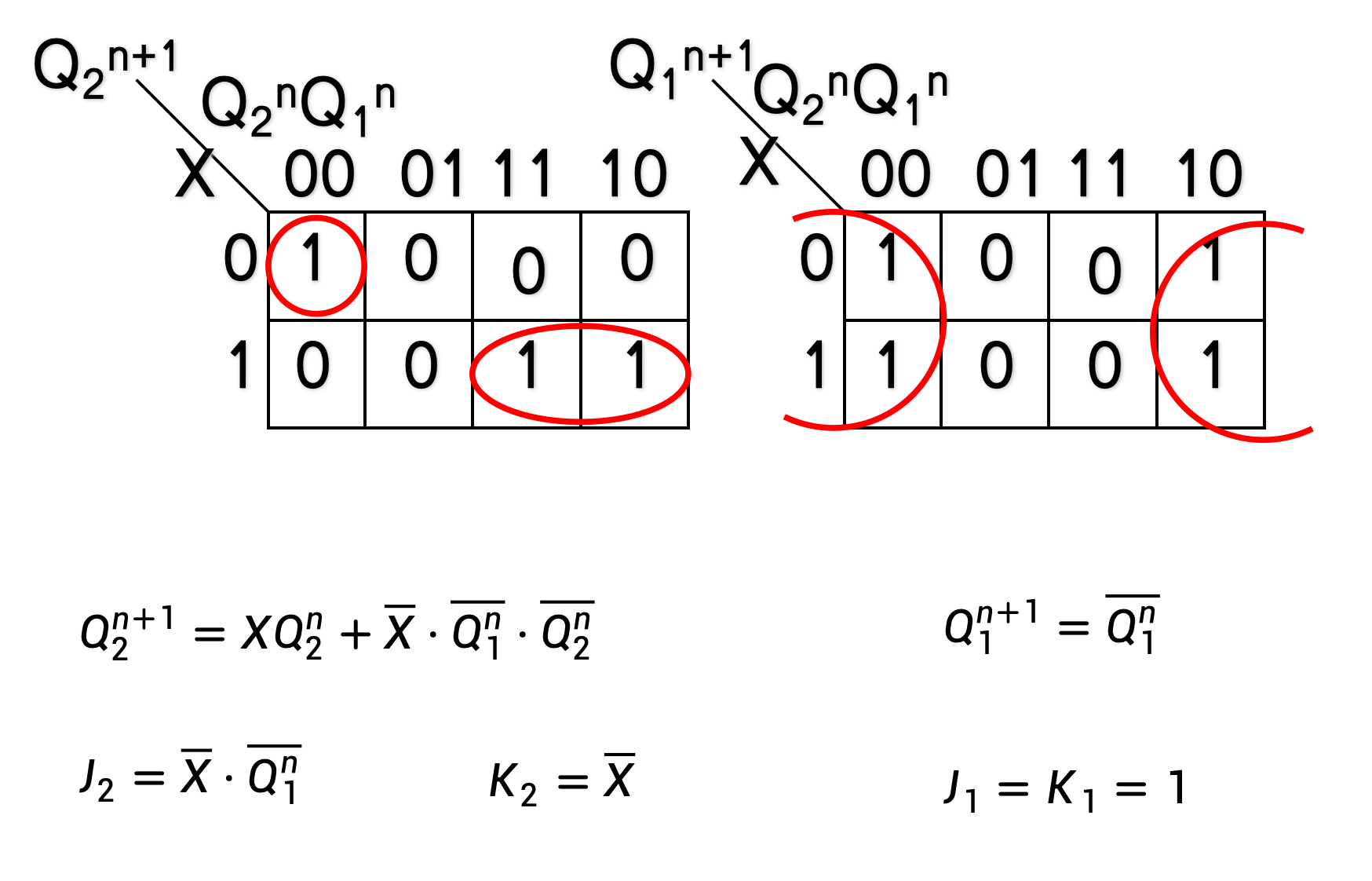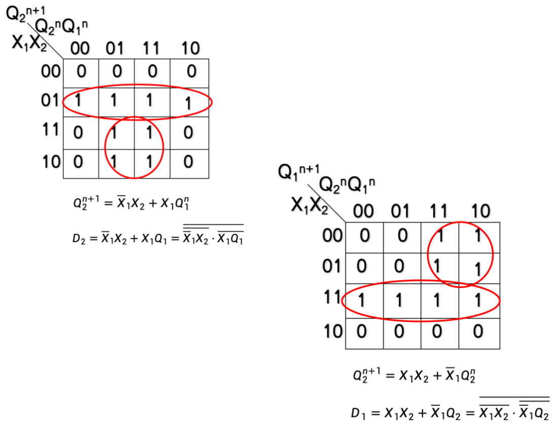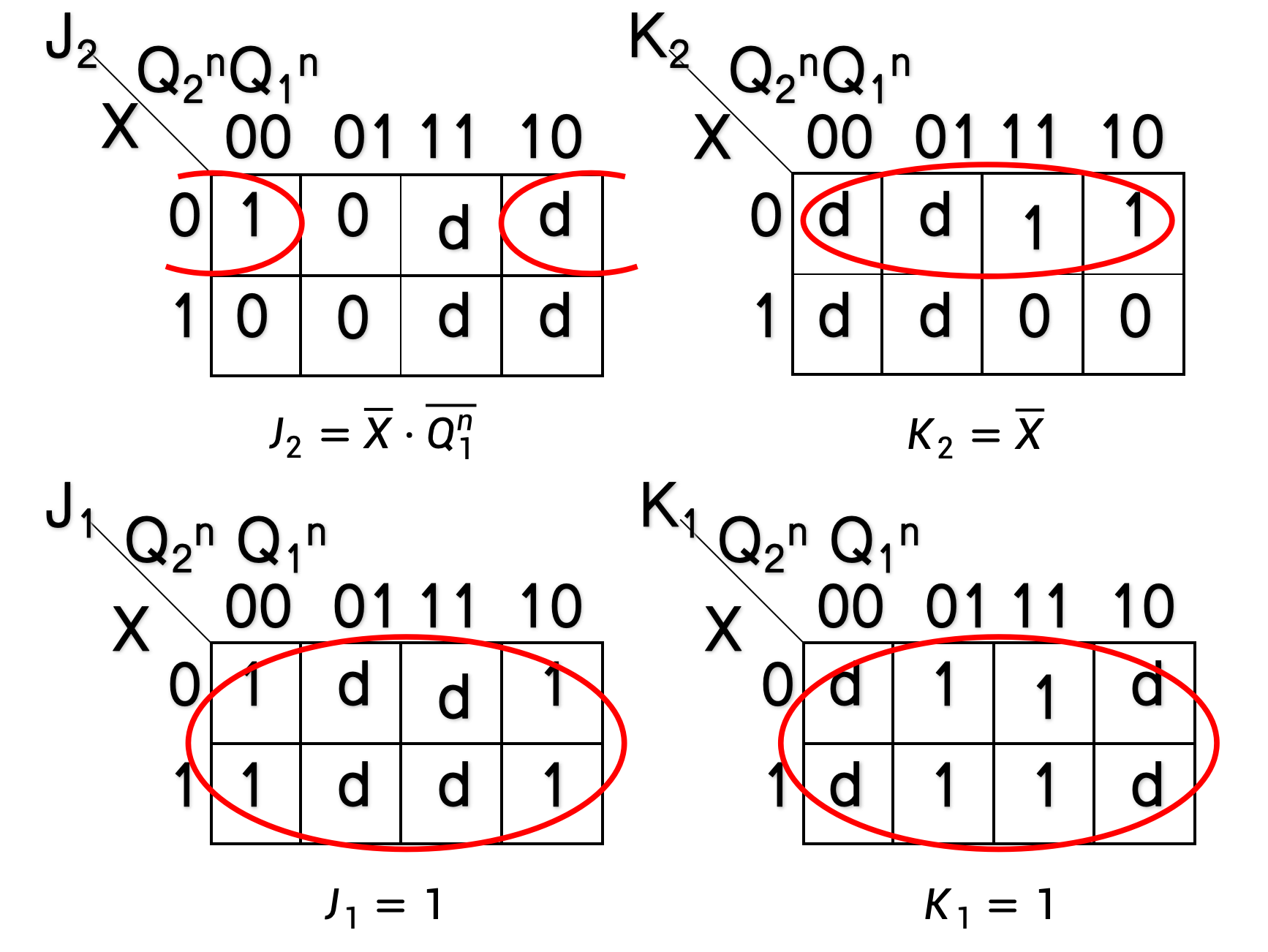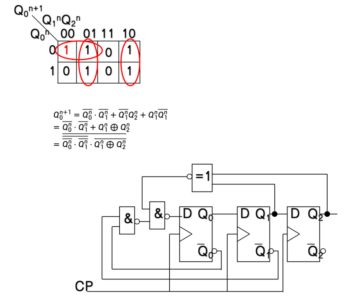 - 这样可以保证相应触发器的激励函数对应的卡诺图中有较多的"1"相邻,有利于激励函数的化简。
