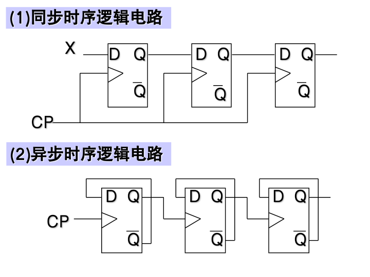 若时钟CP同时加到每一个存储元件上为同步 ,否则为异步。