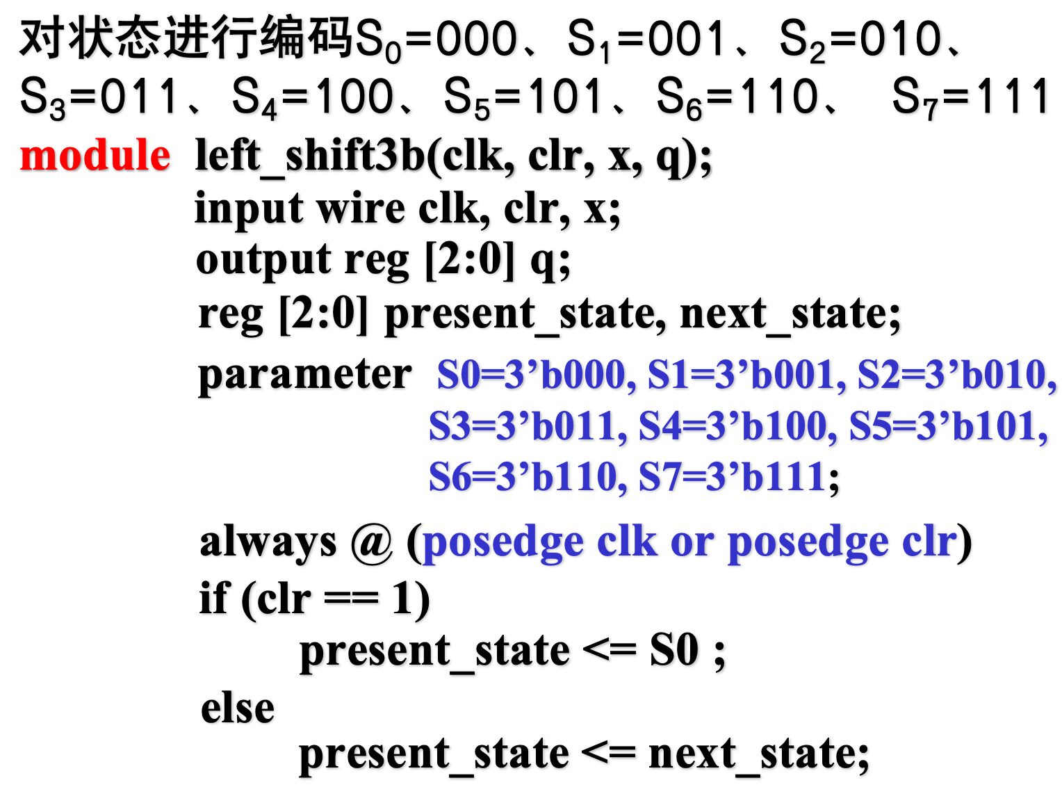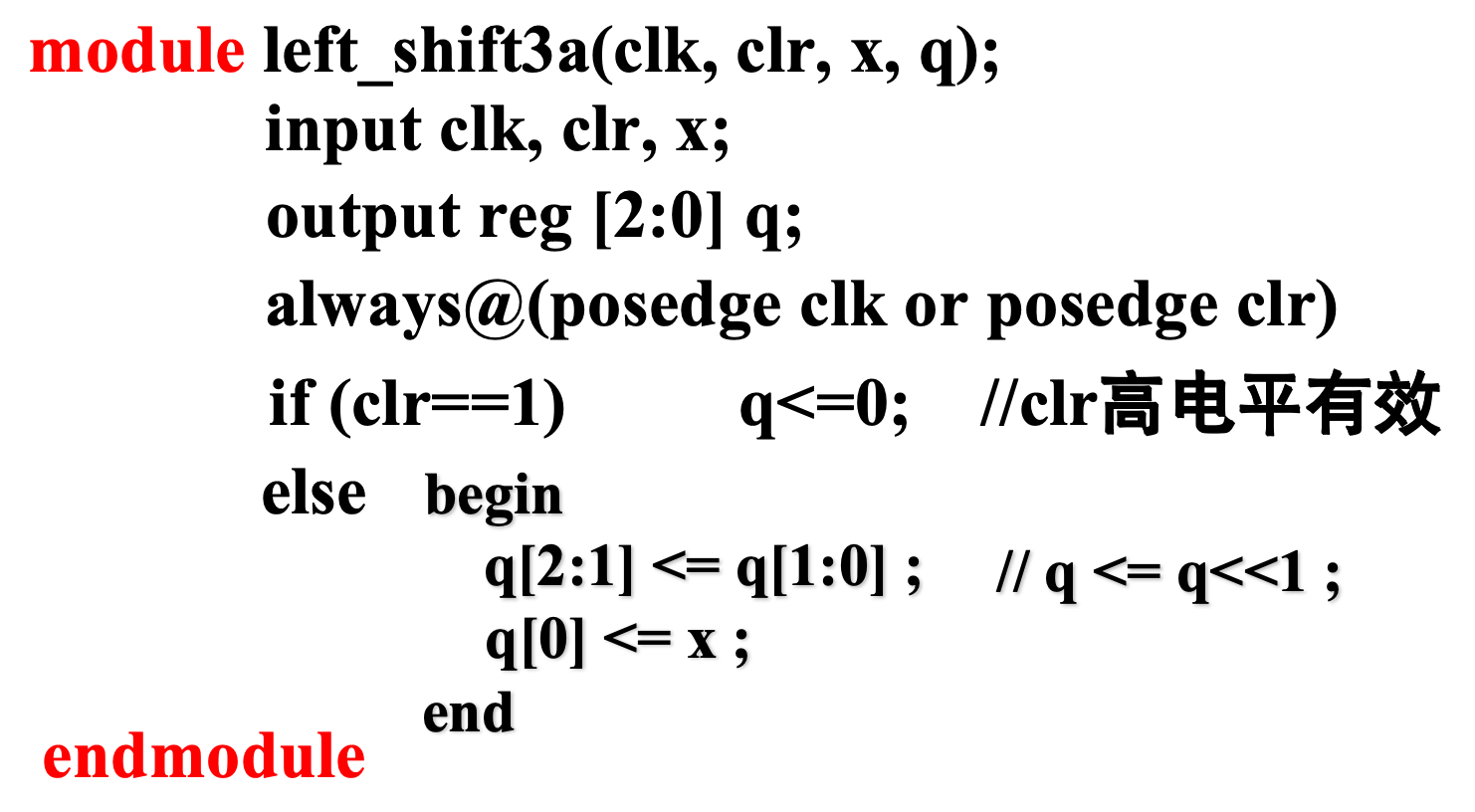 例:设计一个三位的移位寄存器,输入信号由低位到高位依次进行左移。