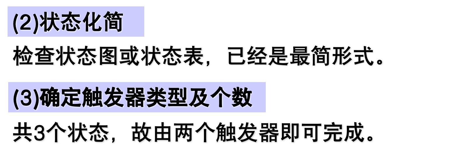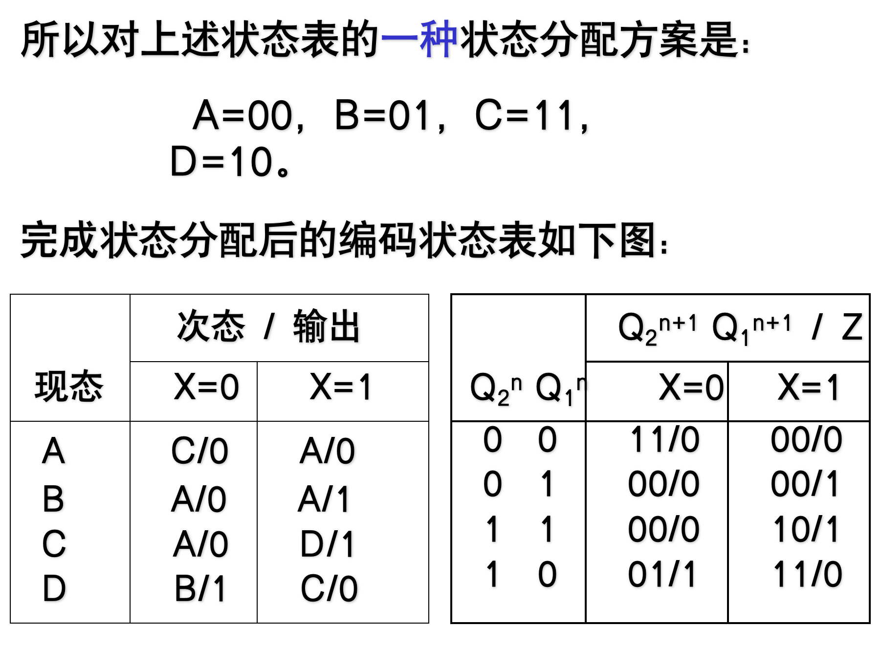 - 当时序电路的状态分配满足原则1和原则2时,电路的激励方程比较简单;