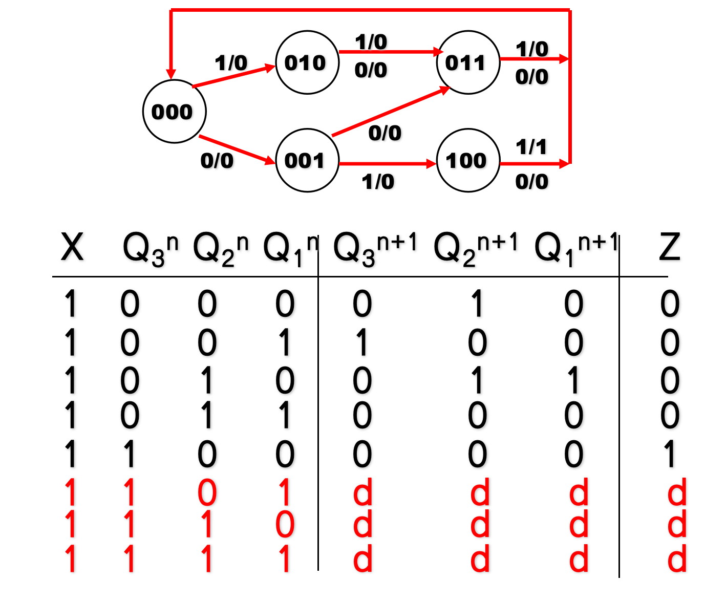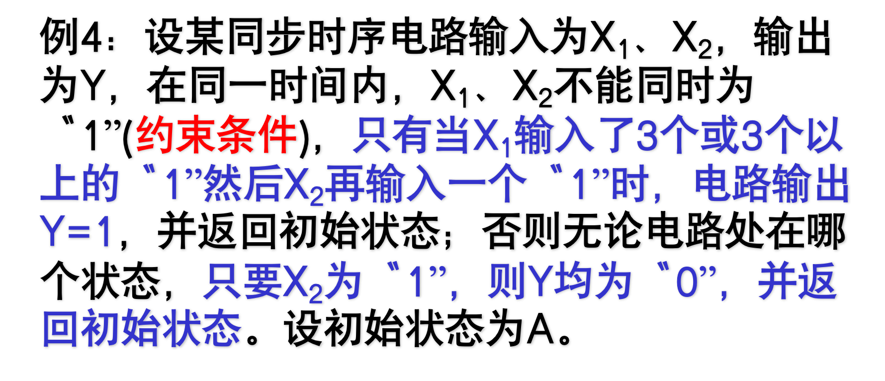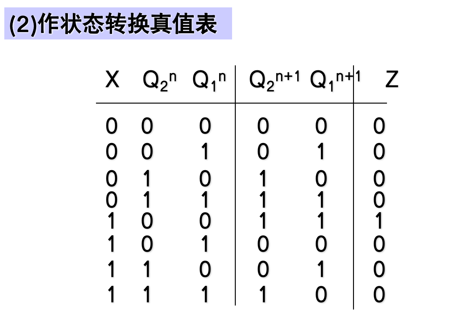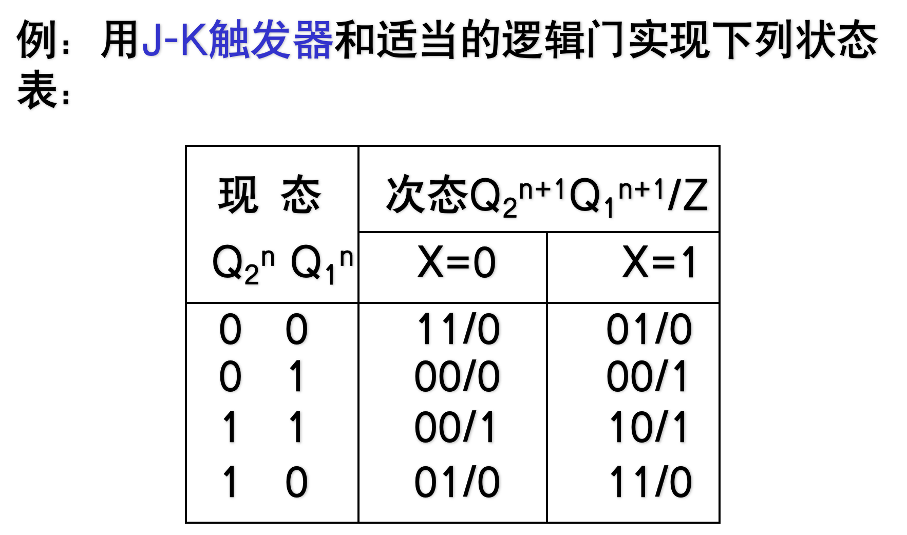- 存在任意项(或约束项)的状态表称不完全确定状态表,它所描述的电路叫不完全确定电路。