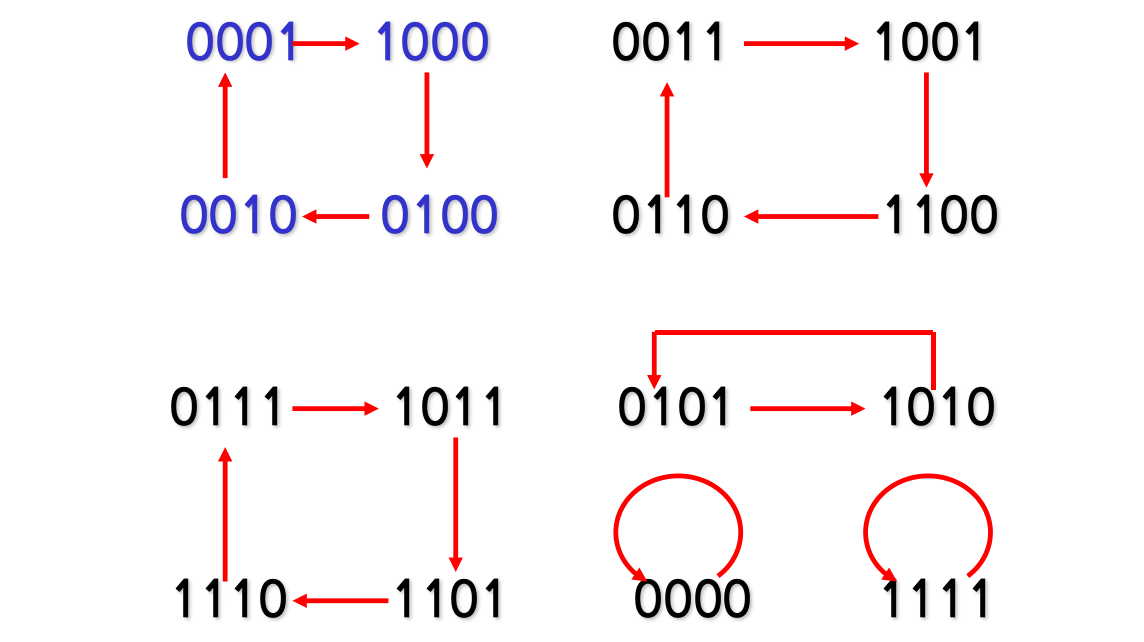 由于有无效循环存在,故可以通过修改反馈函数使电路能开机后自动进入有效循环