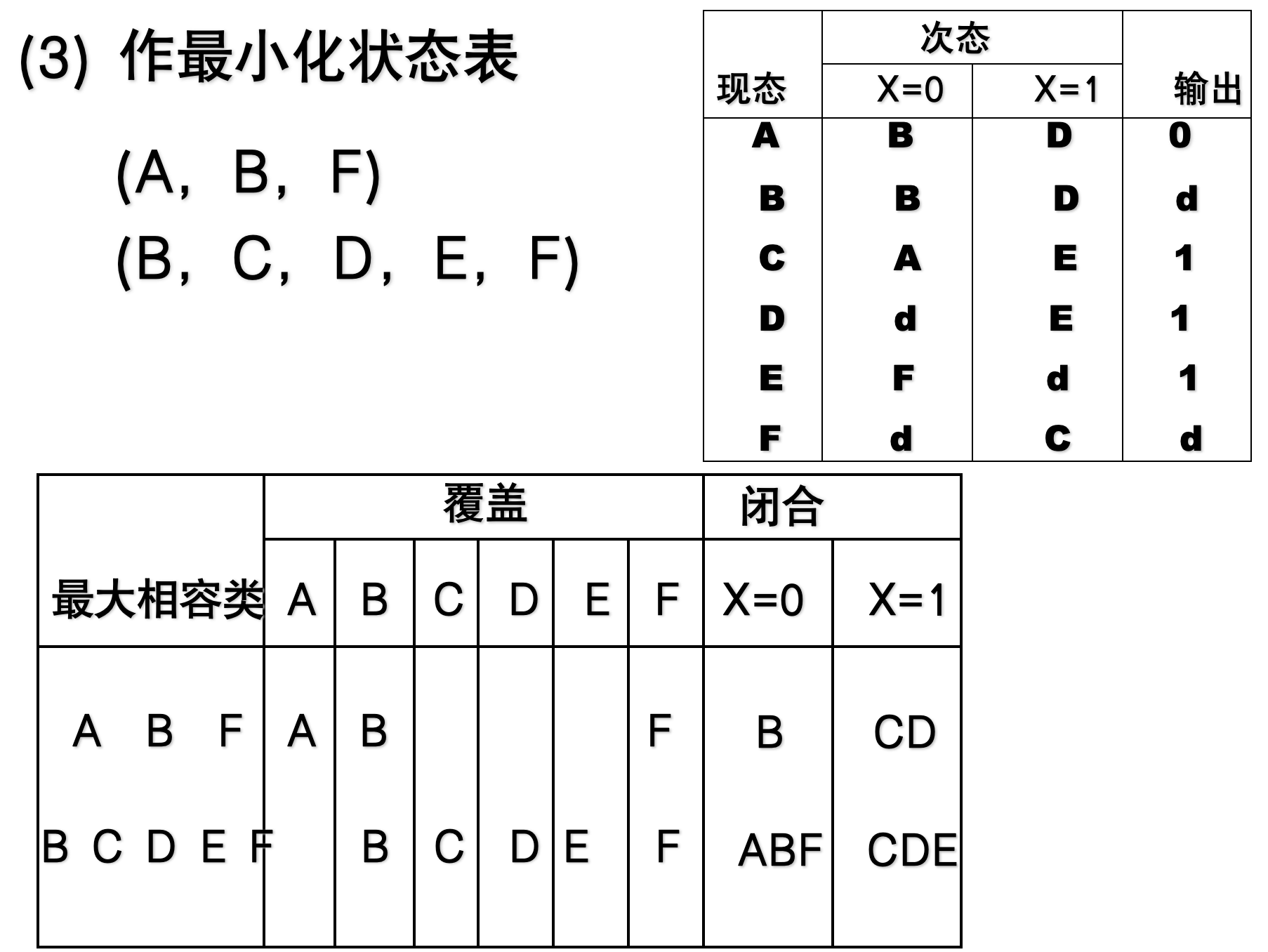 - 不完全确定状态表的最简化,就是寻找最小闭覆盖。