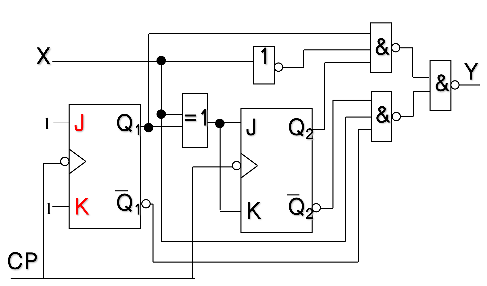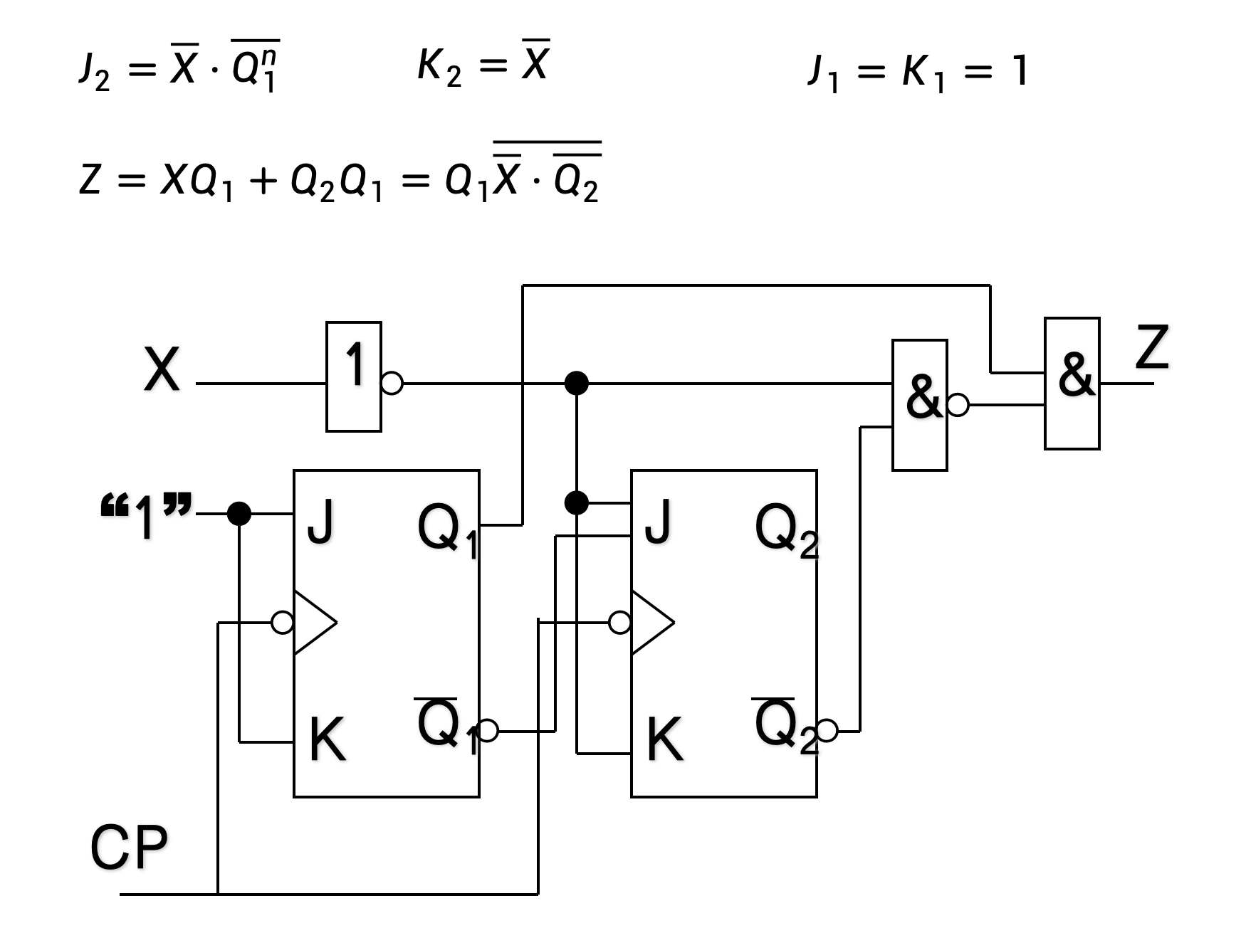 示例 :试用JK触发器 设计一个串行"111"序列检测器(可重叠)。