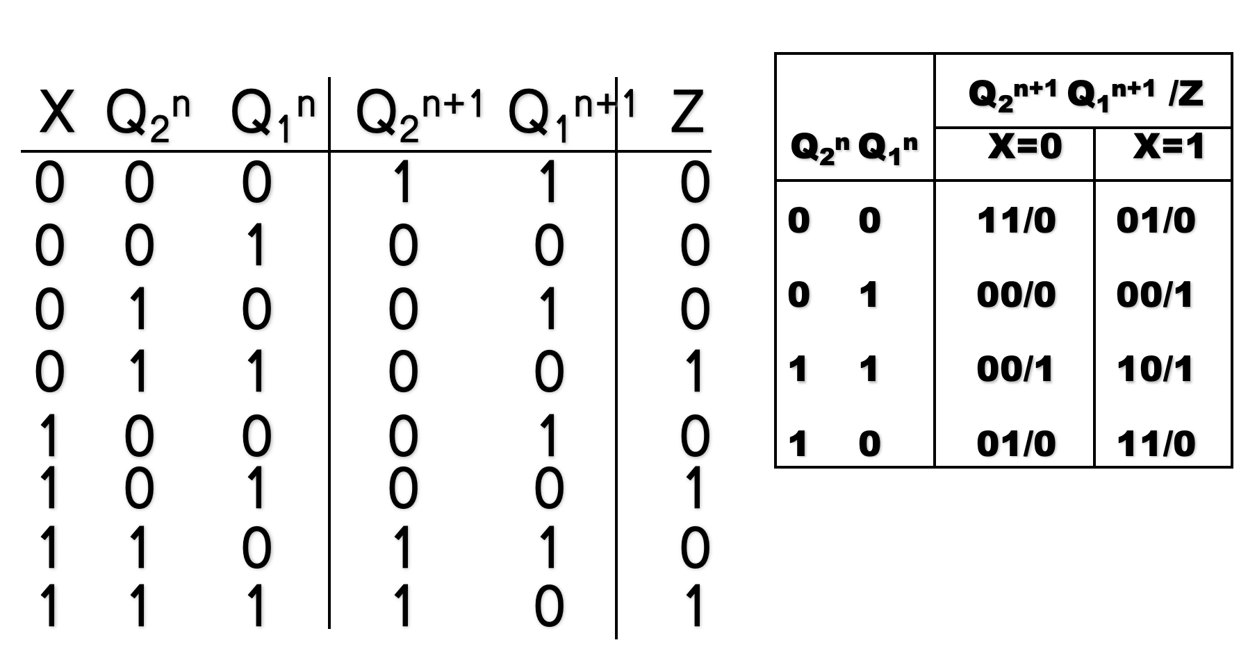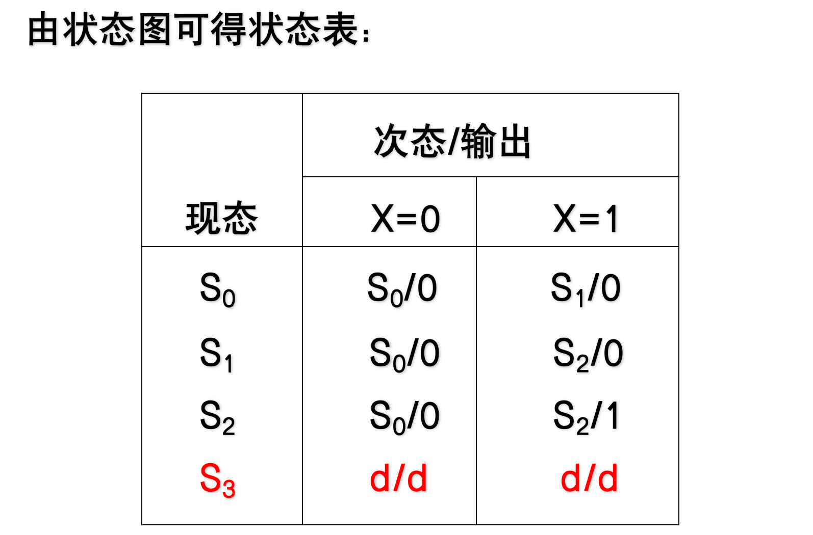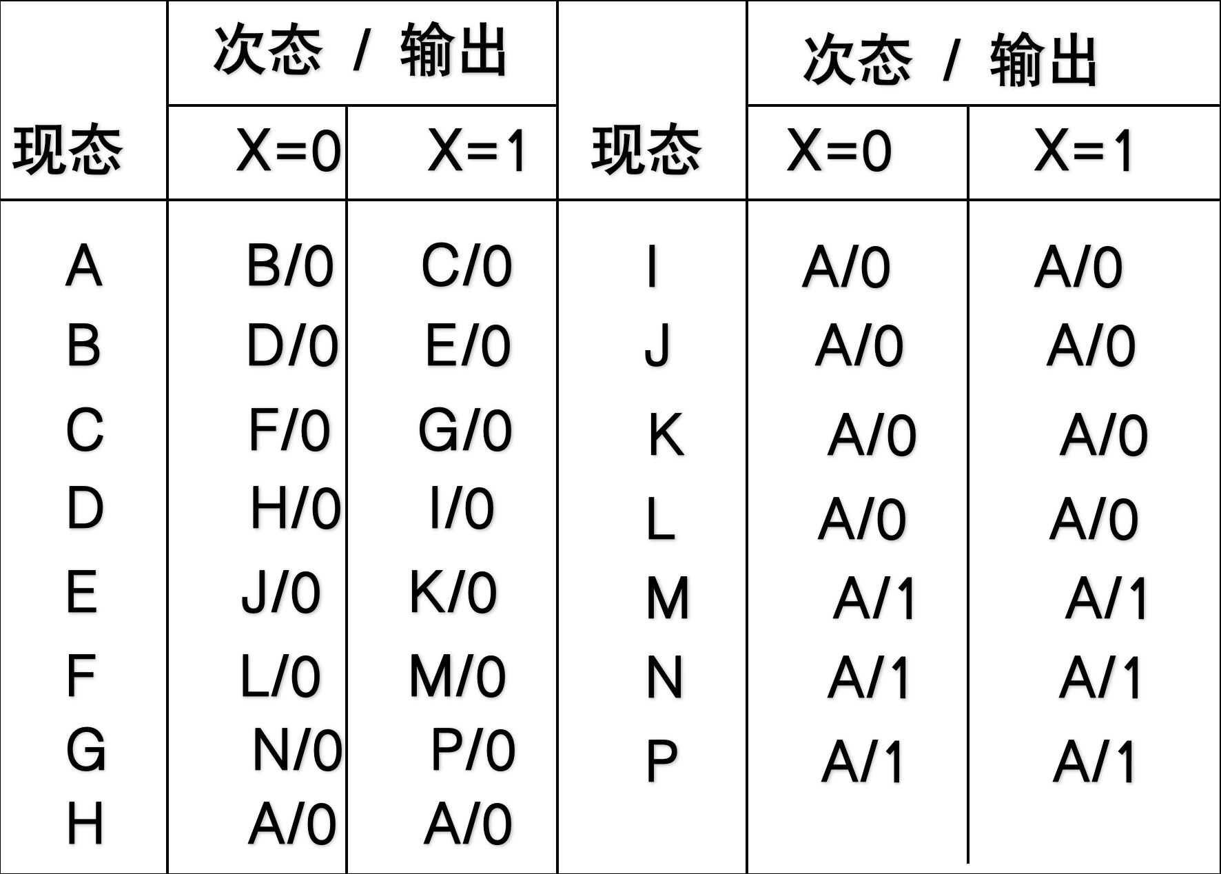 - 若状态表中的次态和输出都有确定的状态和输出,则称为完全确定状态表。