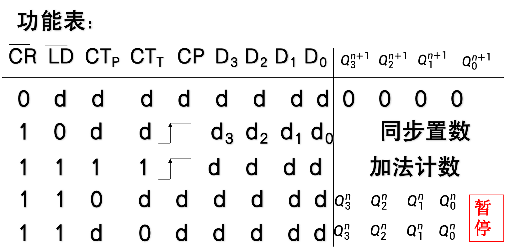 | 1 | 0 | d d d | d d d | ↑ \uparrow ↑ | D 3 D 2 D 1 D 0 D_3 D_2 D_1 D_0 D3D2D1D0 | 同步置数 |