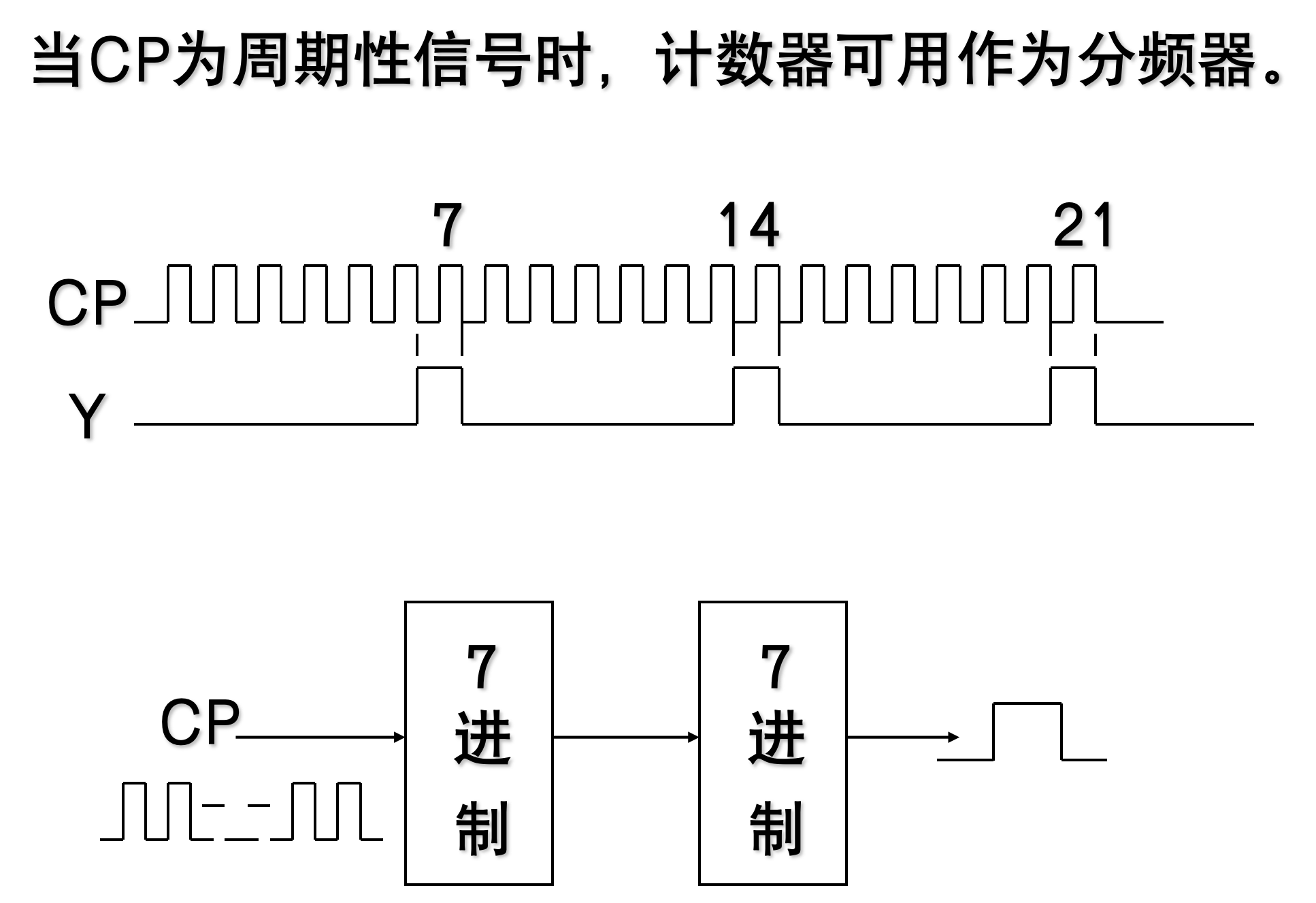 工作原理:计加到计数器上的CP脉冲的上升边沿 或下降边沿的个数。